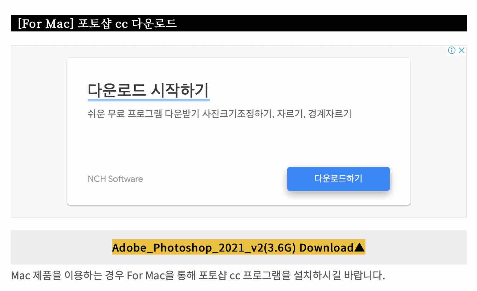 예나 지금이나 검색 엔진에서 ‘포토샵 무료 다운로드’를 검색하면, 포토샵을 무료로 다운 받을 수 있는 방법을 소개하는 글들을 어렵지 않게 찾을 수 있습니다. 해당 글들을 클릭해 들어가면 특정 프로그램을 설치하도록 유도하거나, 출처가 불분명한 파일을 다운로드 받도록 안내합니다. 안내된 대로 진행하였더니 포토샵이 잘 실행될 수도 있습니다.