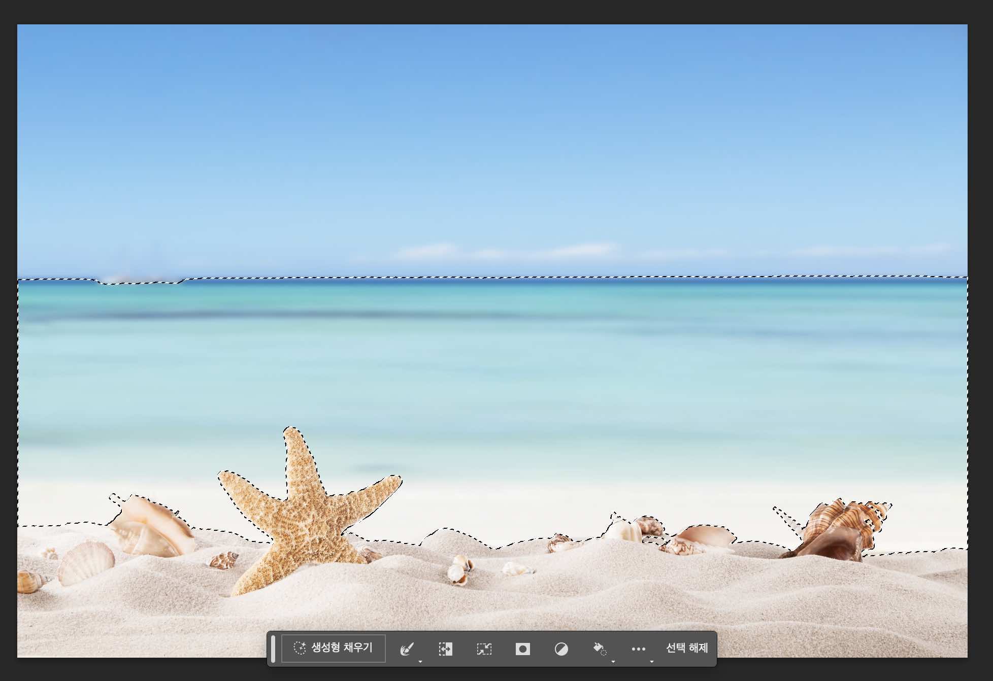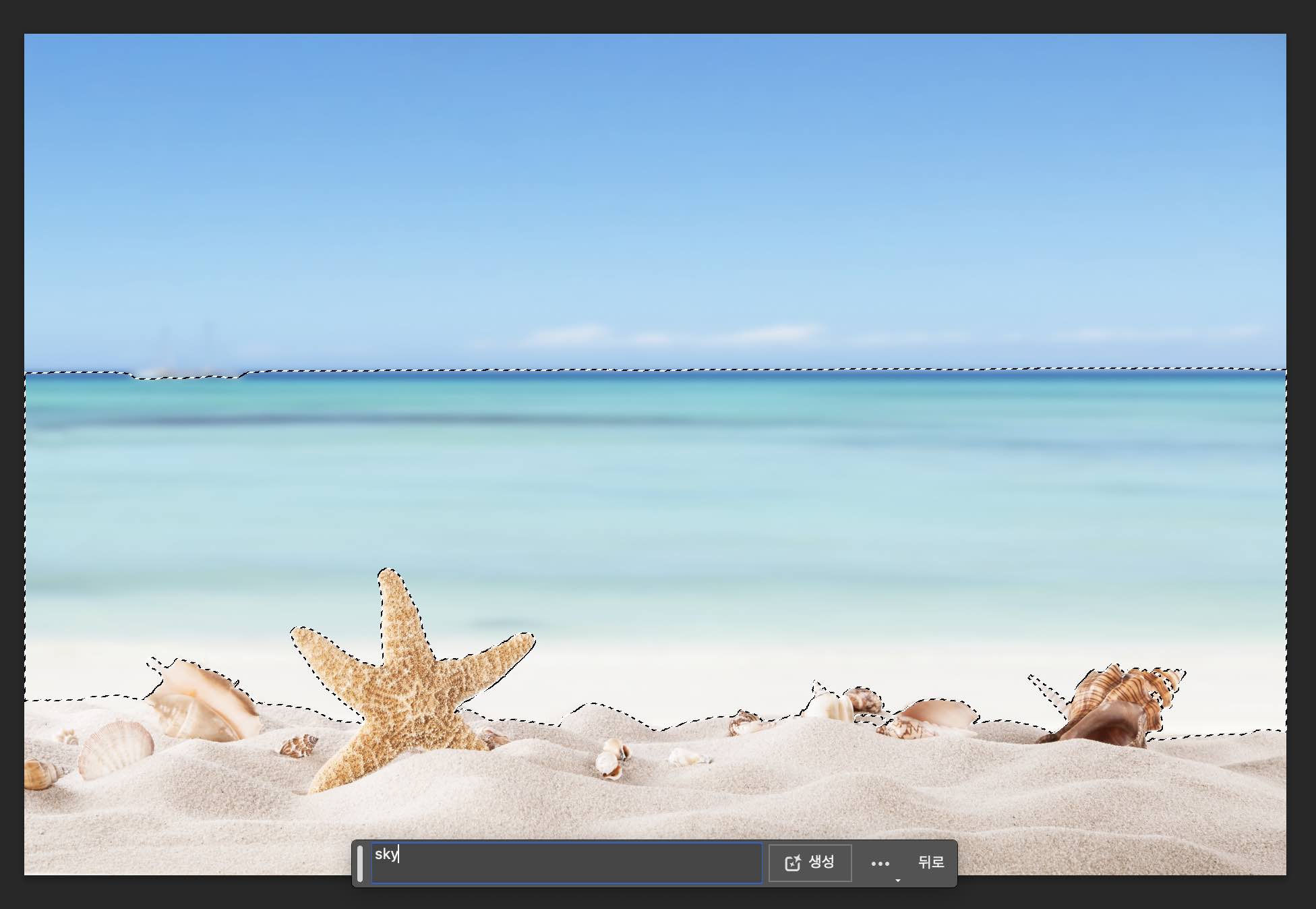 물론, ‘생성형 채우기’ 기능을 사용하여, 바다를 하늘로 바뀌게 할 수도 있습니다.