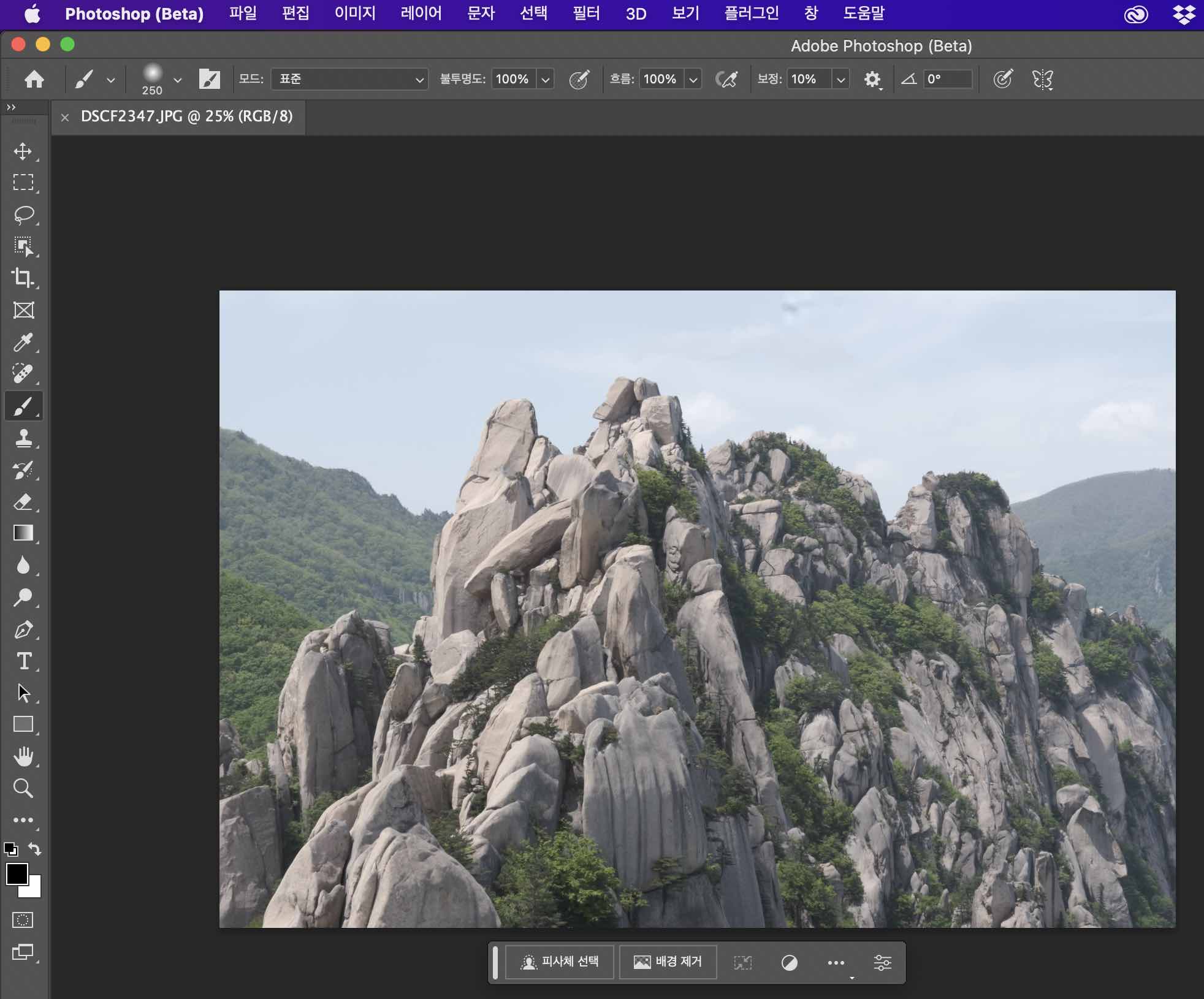 제가 설악산 여행 때 찍은 사진 파일을 포토샵에서 열어 보았습니다.