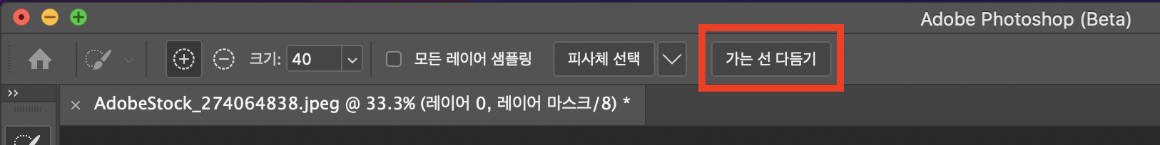 그리고 상단 메뉴에서 [가는 선 다듬기] 버튼을 선택합니다.