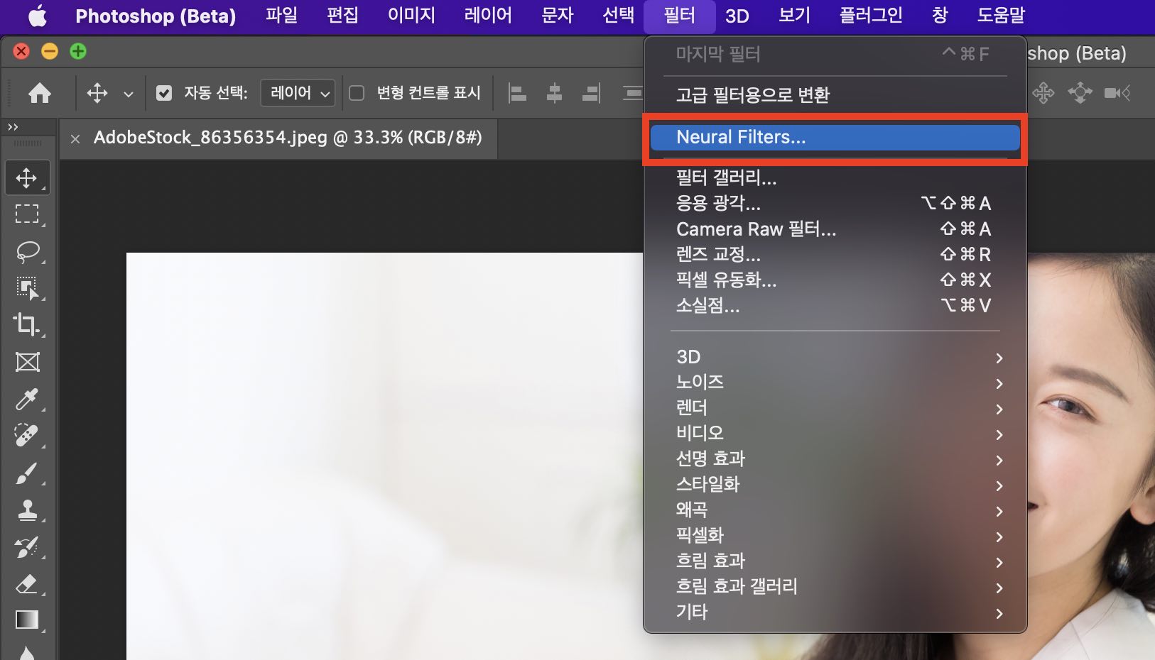 포토샵 추천 기능 #4 - 뉴럴 필터(Neural Filters)