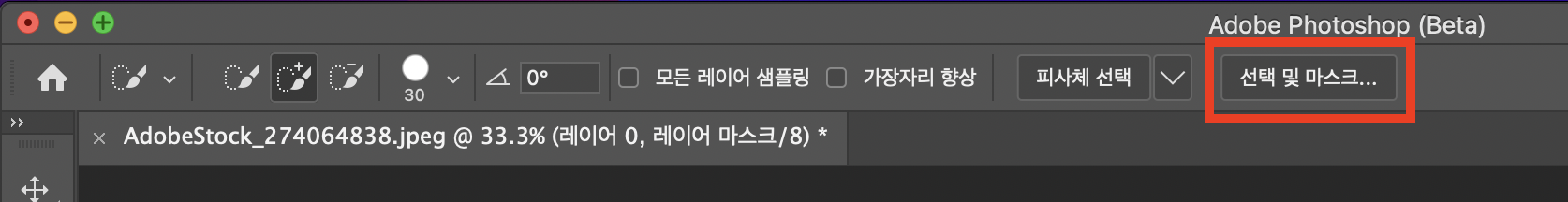 상단 메뉴에서 [선택 및 마스크]를 선택합니다.