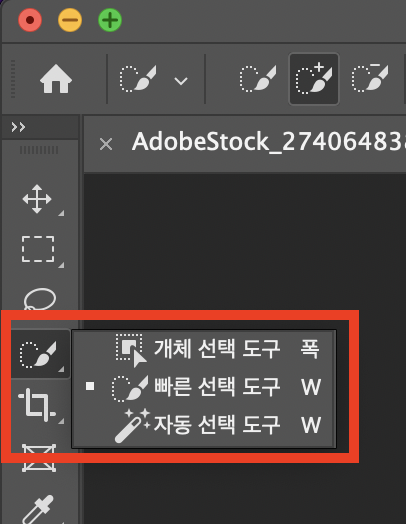 왼쪽 메뉴에서 [빠른 선택 도구]를 선택합니다.