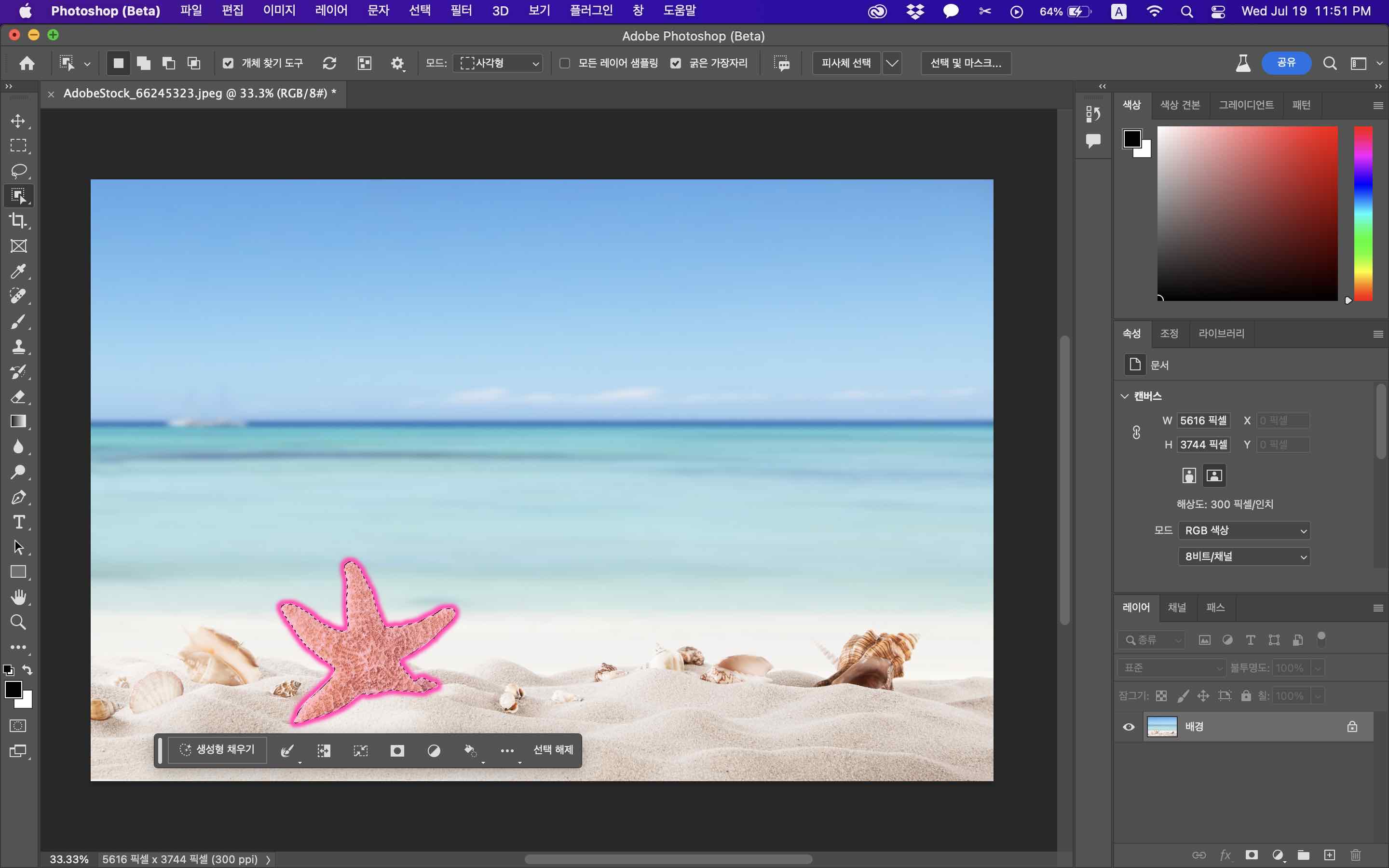 그렇다면 이제 ‘생성형 채우기’ 기능을 사용해 보겠습니다.