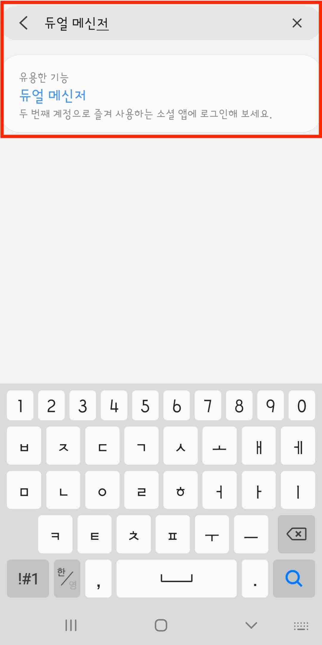 2. '듀얼 메신저' 또는 'Dual Messenger'를 검색하고 아래 검색 결과를 누릅니다.