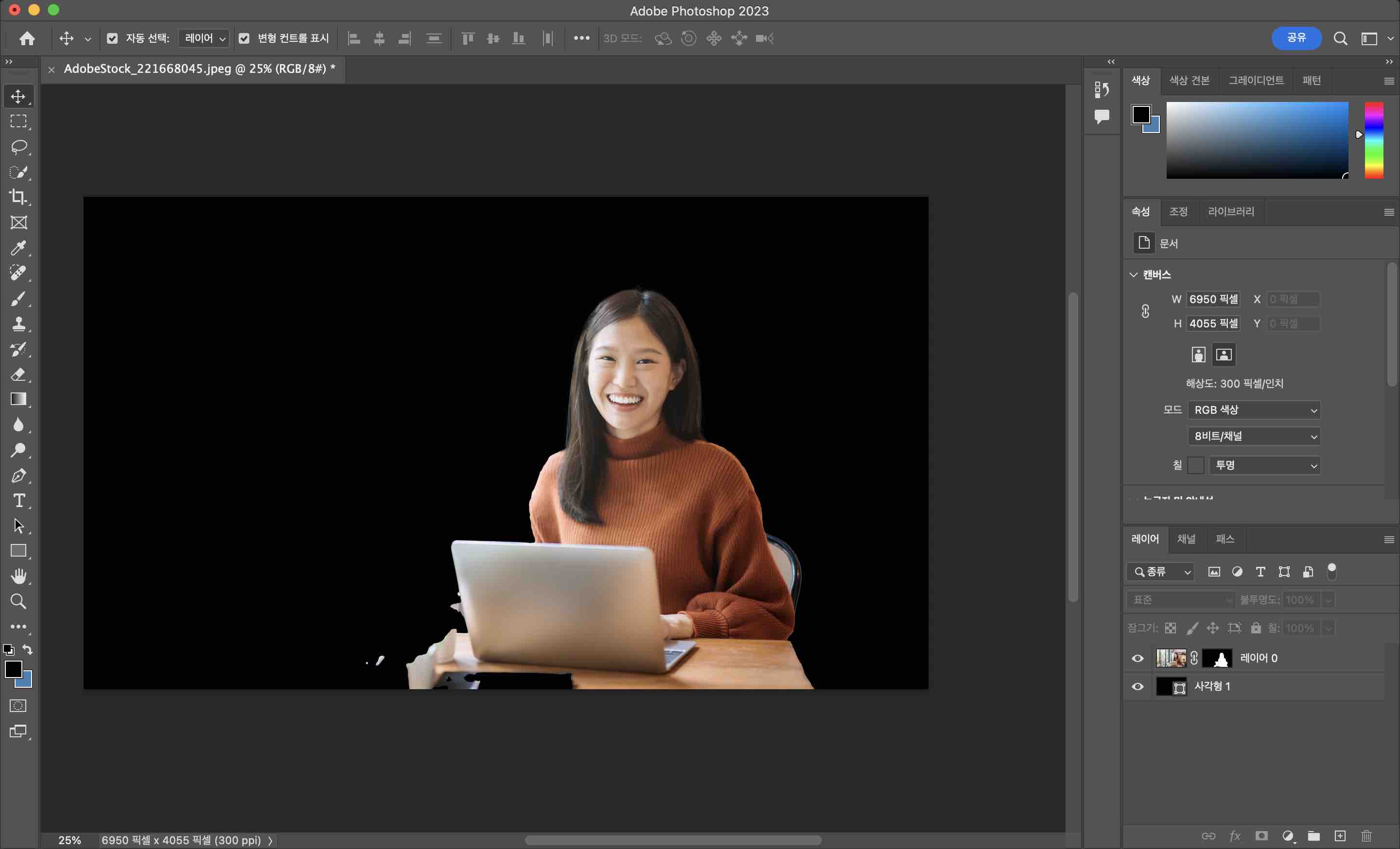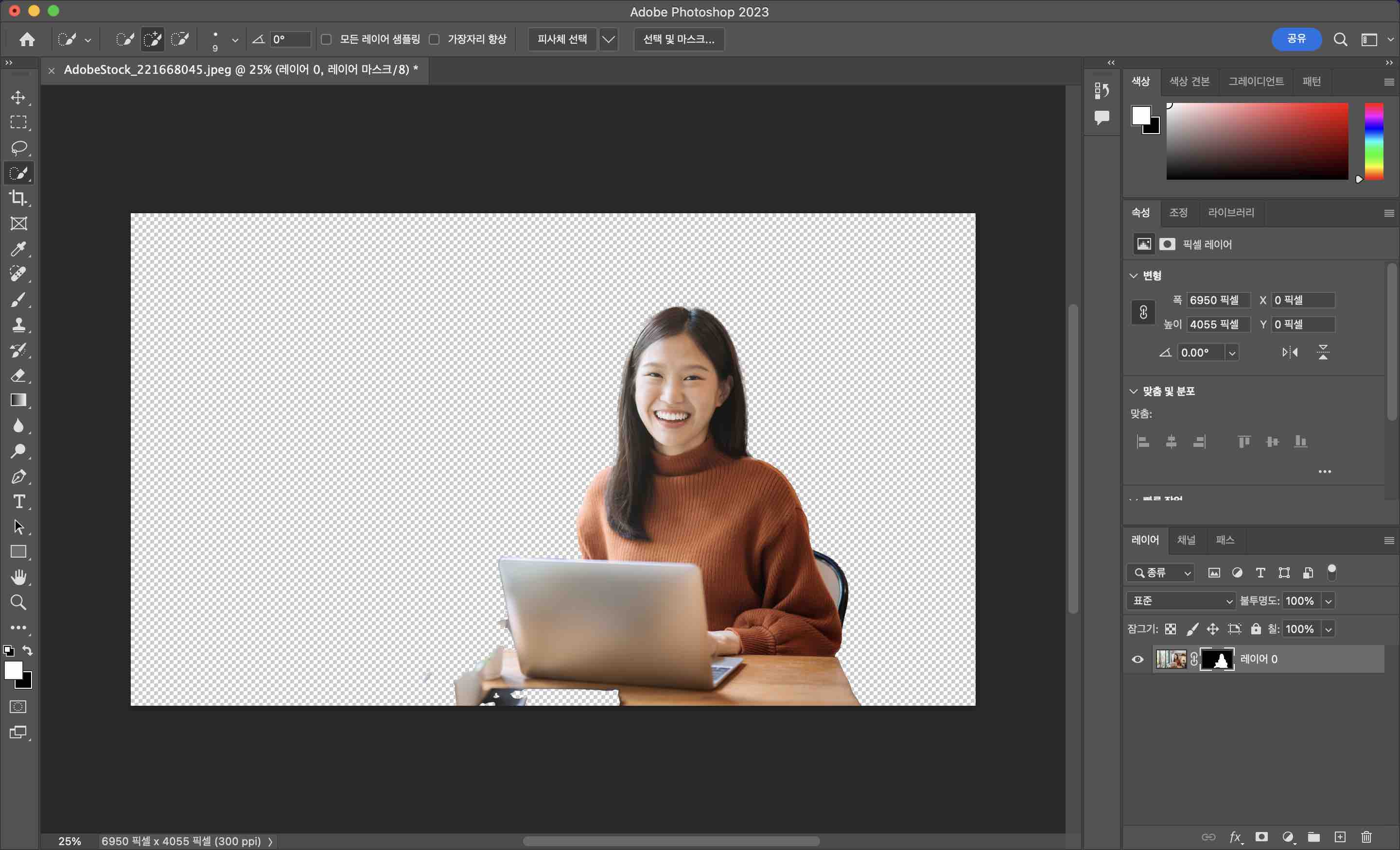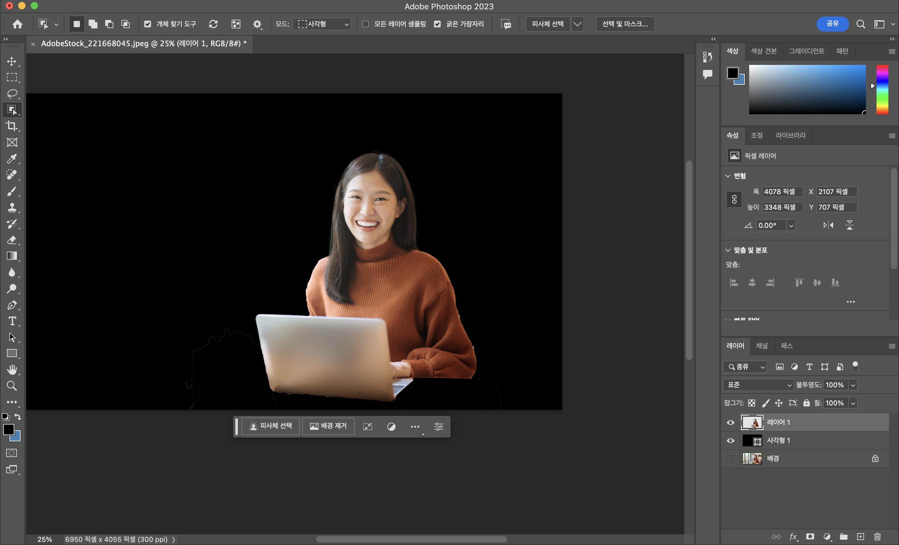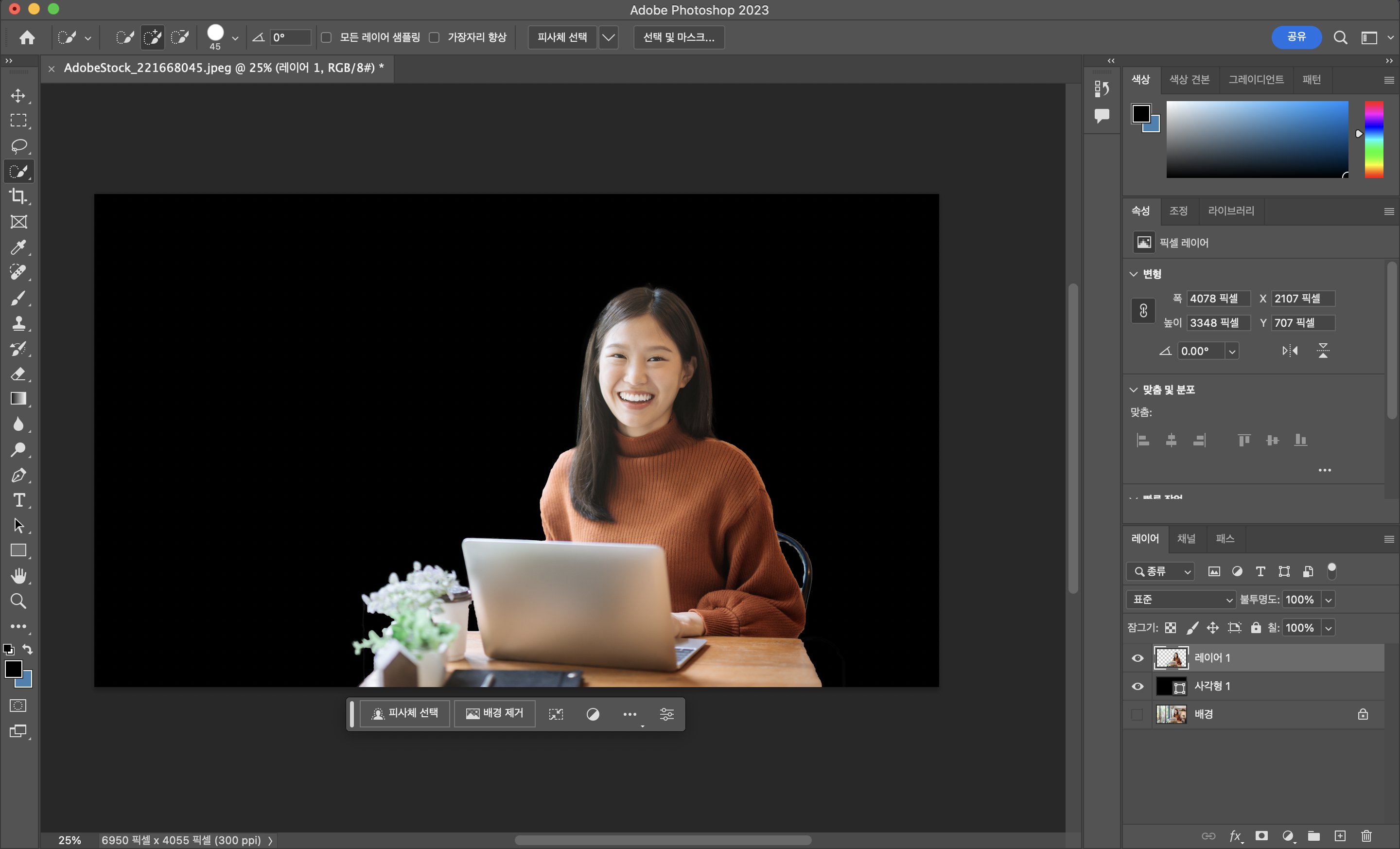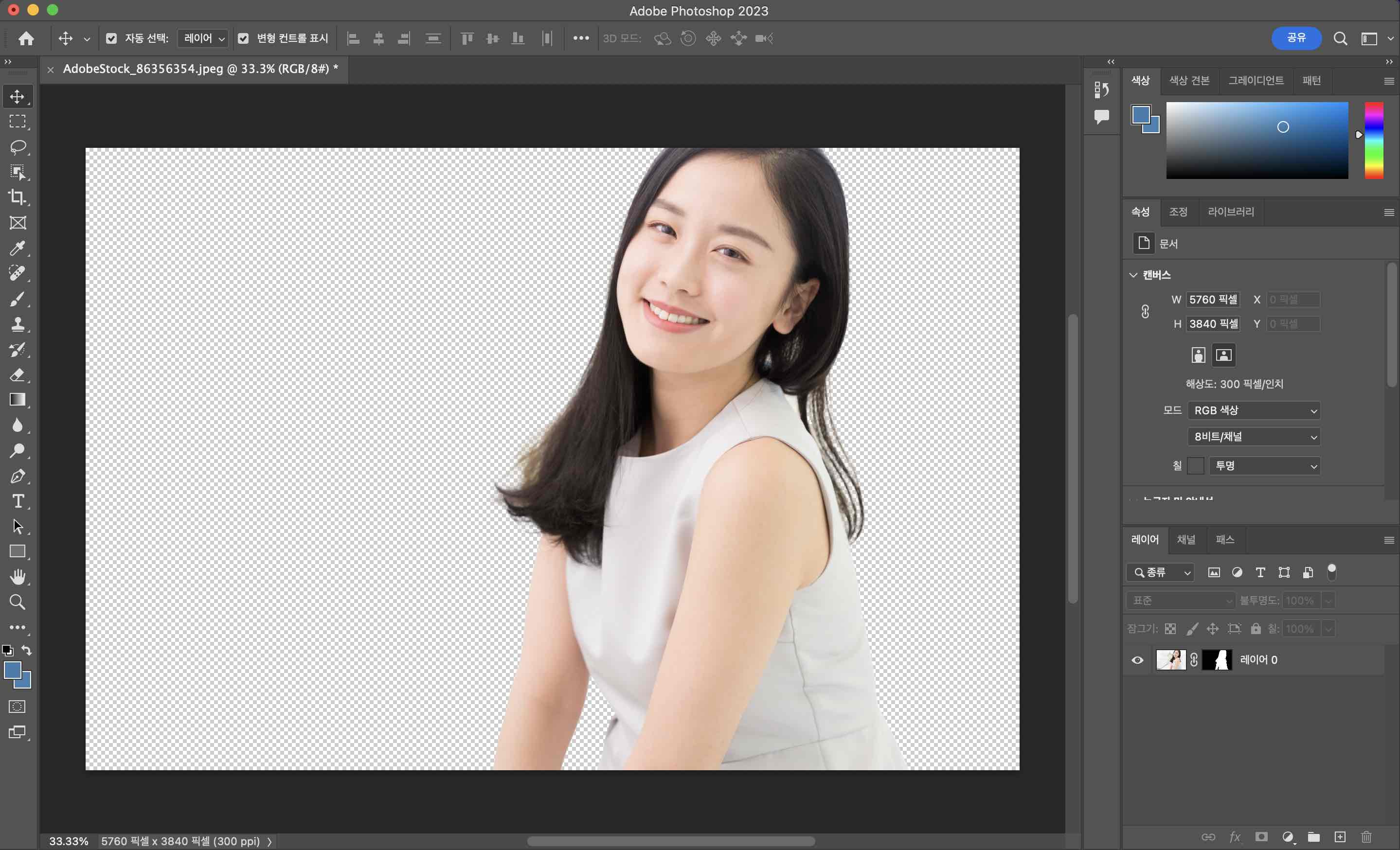 이제 깔끔하게 배경 제거가 완료되었습니다.