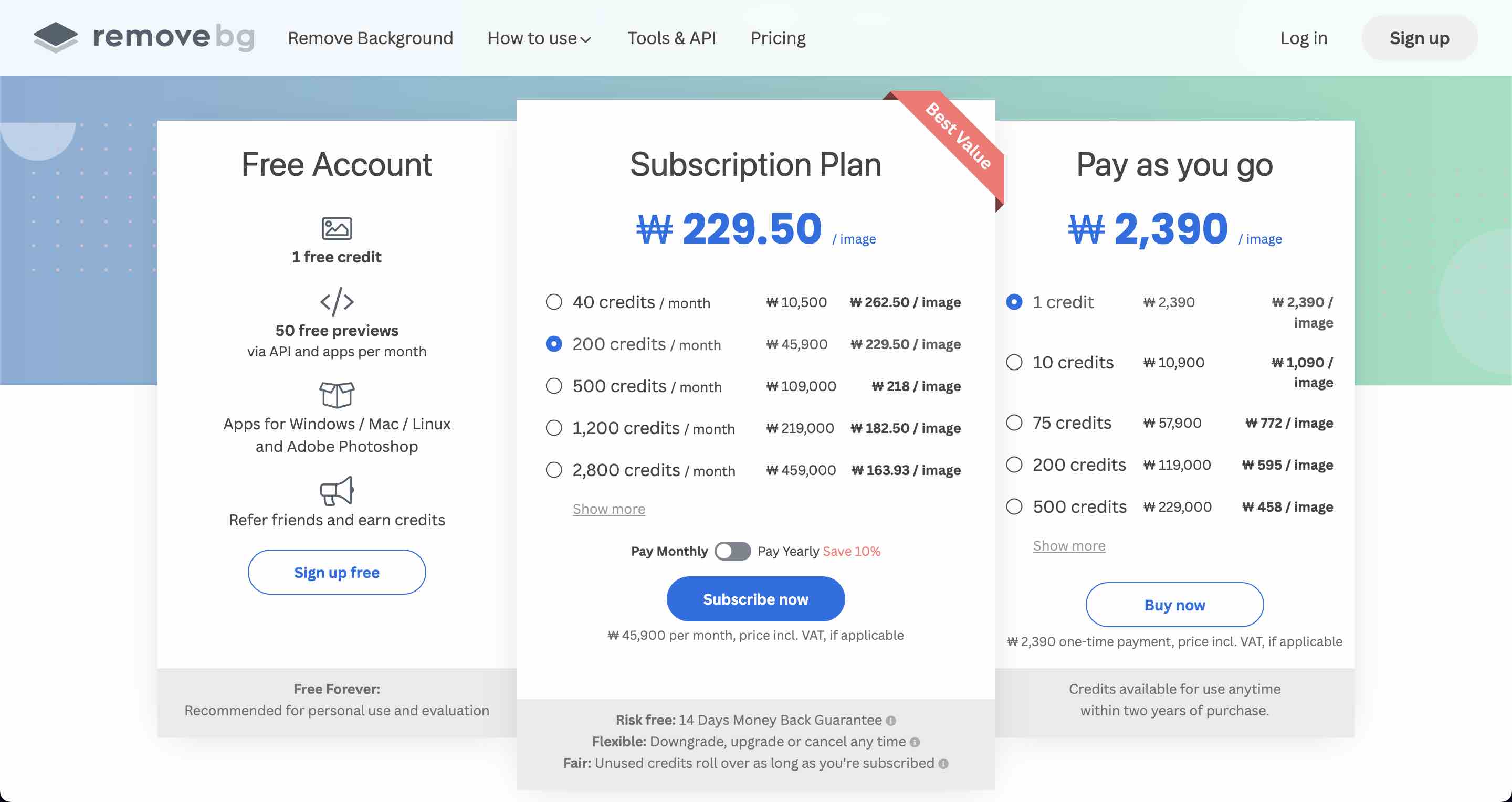 배경 제거를 자주 이용한다면 더 저렴하게 서비스를 이용할 수 있습니다.