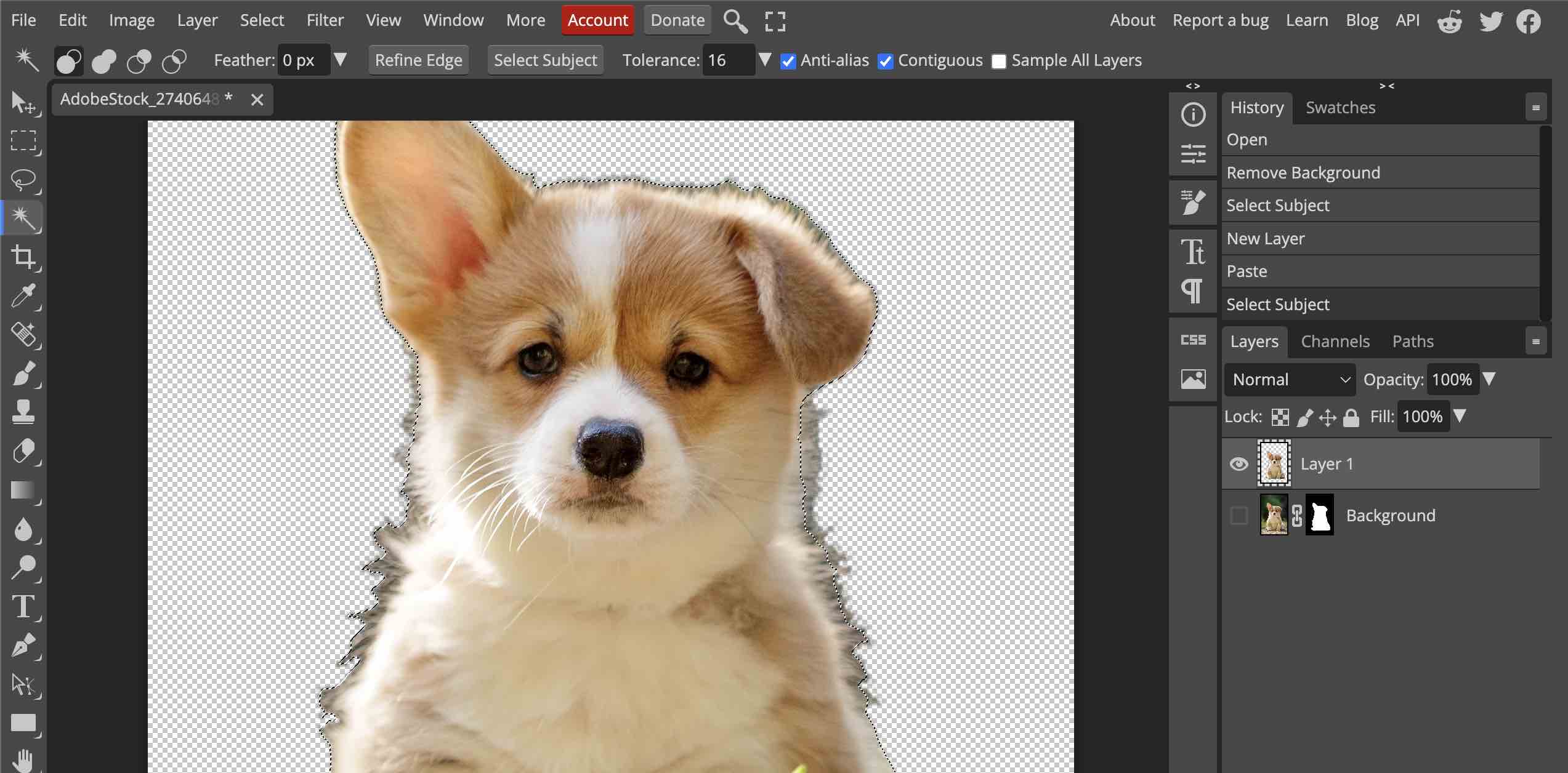 마지막으로 Photopea에서 누끼 따기를 해 보겠습니다.