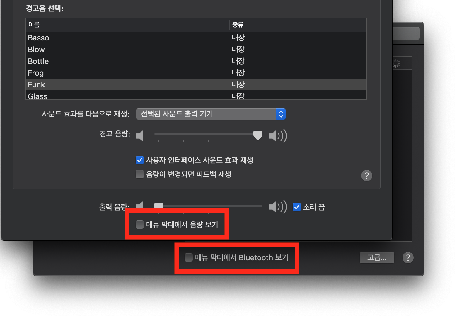 4. 메뉴 막대에서 블루투스, 사운드 아이콘 표시하기