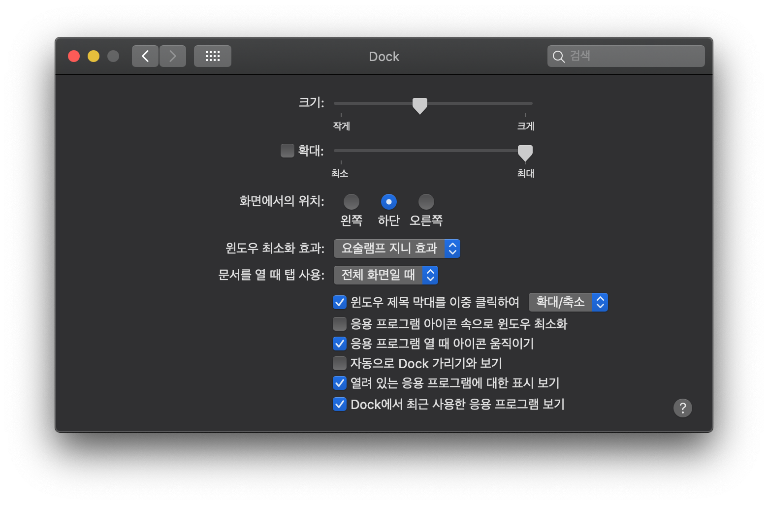 2. Dock 설정 개인화하기