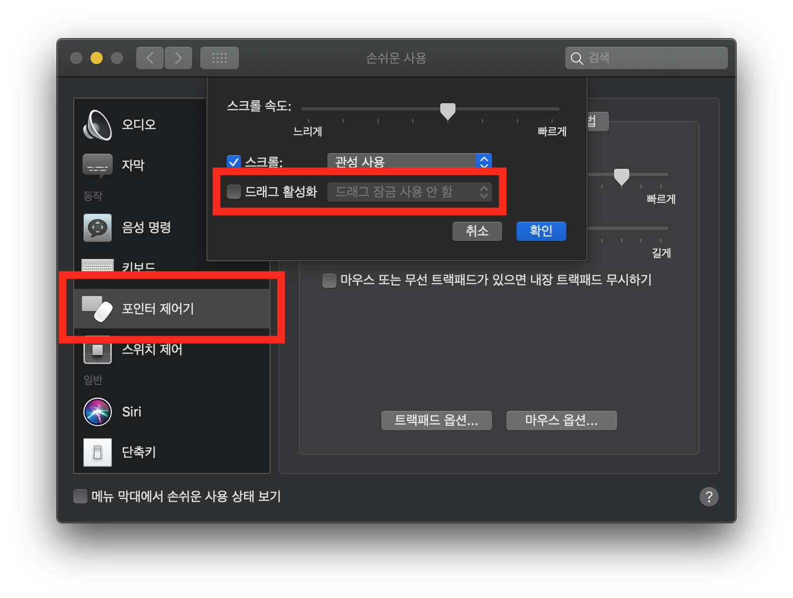 5. 트랙패드의 세 손가락 드래그 활성화하기