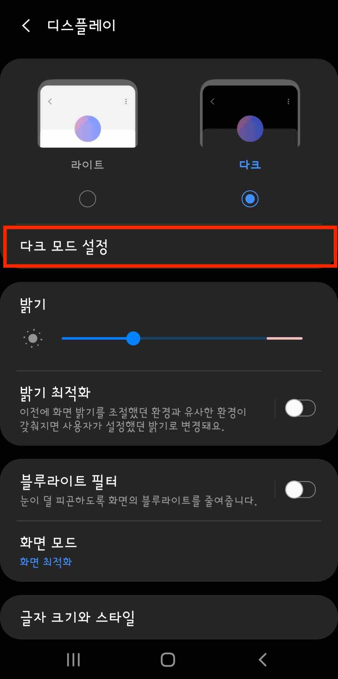 이번 포스팅에서는 안드로이드 기기의 테마를 다크 모드로 적용하는 방법을 알아보겠습니다.