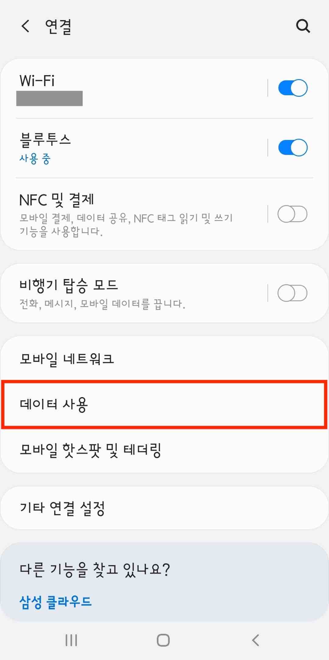 하단의 [데이터 사용] 메뉴를 선택합니다.