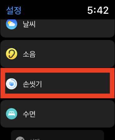 2. 스크롤을 내려서 [손씻기] 메뉴로 들어갑니다.
