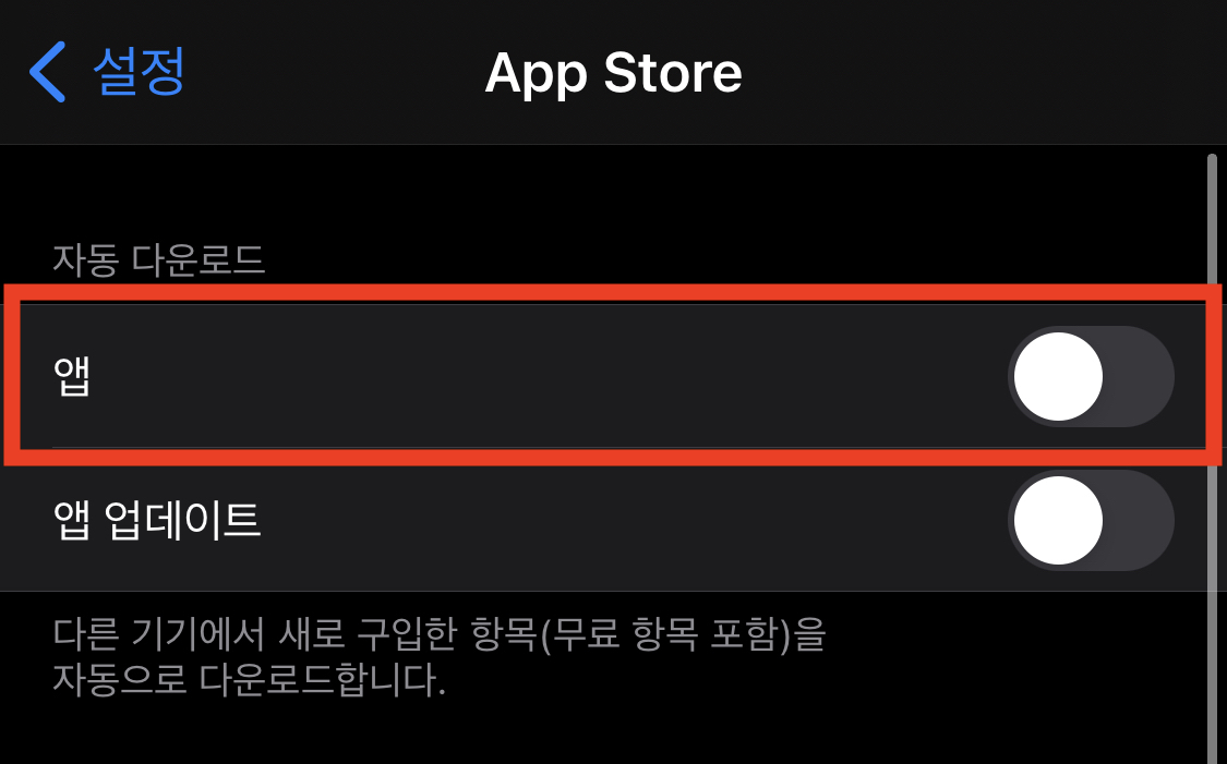 2. [App Store] 메뉴에 들어가서 [자동 다운로드] 섹션을 확인합니다.