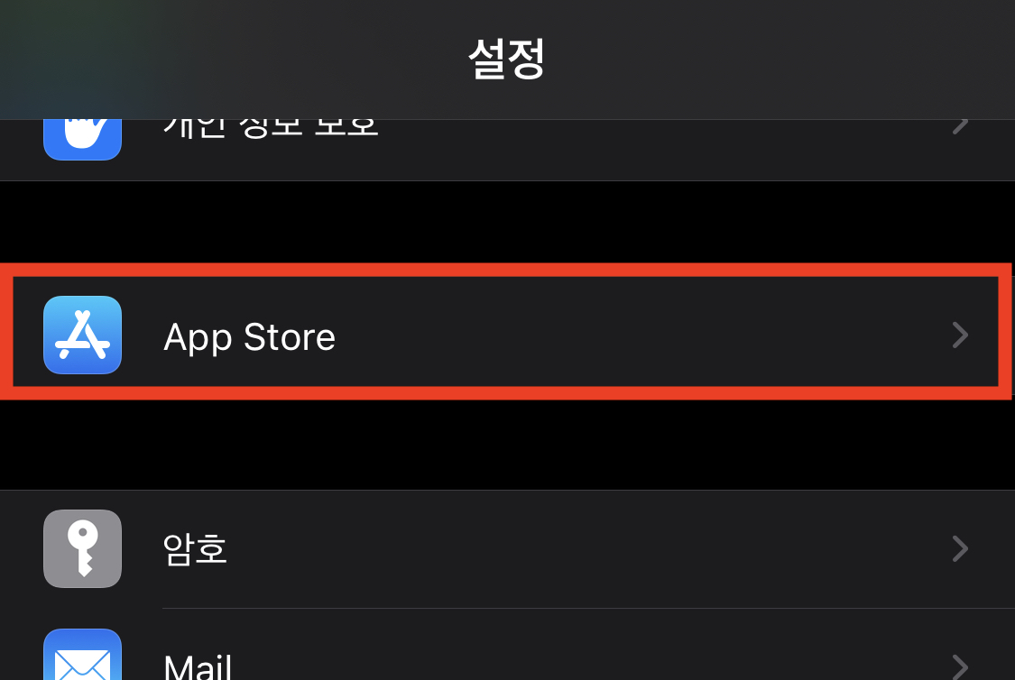 1. [설정] 앱에서 스크롤을 내려서 [App Store]라는 항목을 찾습니다.