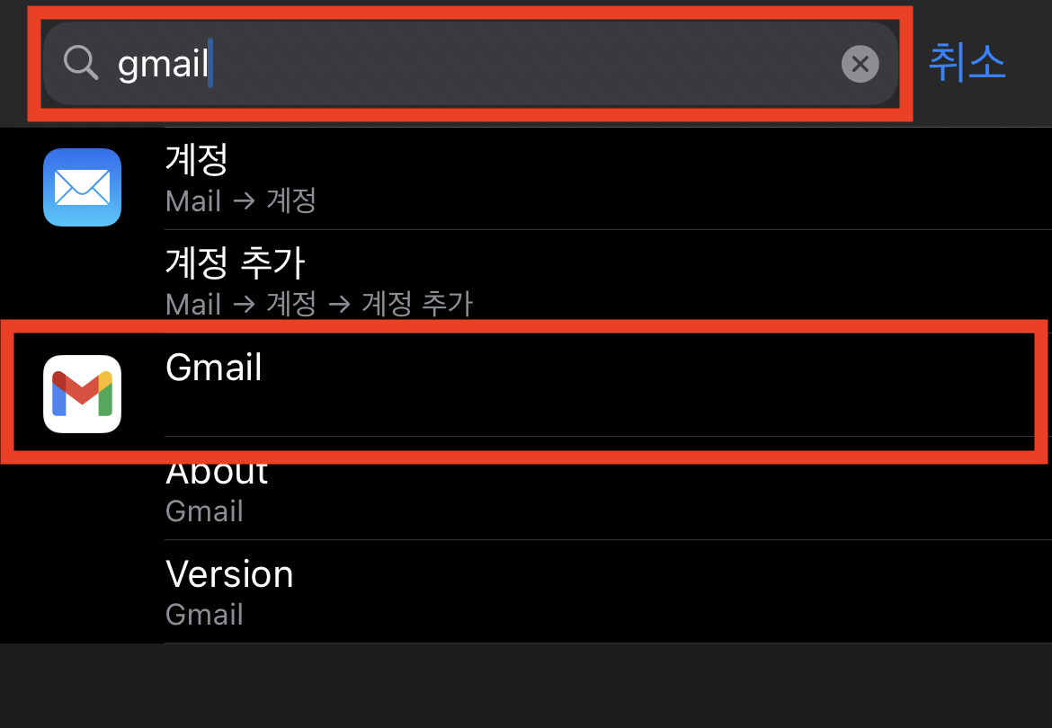 1. [설정] 앱의 최상단에 있는 [검색]에서 언어 변경을 원하는 앱을 검색합니다.