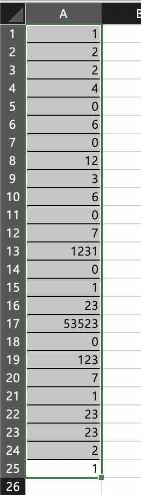 아래 예제 표는 총 25개의 셀로 구성되어 있으며, 다수의 중복된 값을 가지고 있습니다.