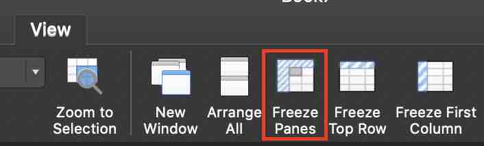 마찬가지로 A, B열을 고정하고자 한다면, C열을 선택한 채로 상단 메뉴에서 [보기(View)]를 누른 뒤 [틀 고정(Freeze Panes)]을 누르면 됩니다.