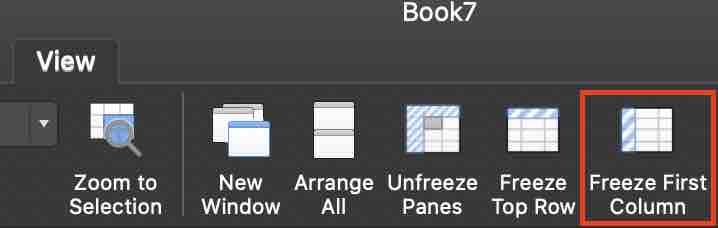 상단 메뉴에서 [보기(View)]를 누른 뒤 [첫 열 고정(Freeze First Column)]을 누릅니다.