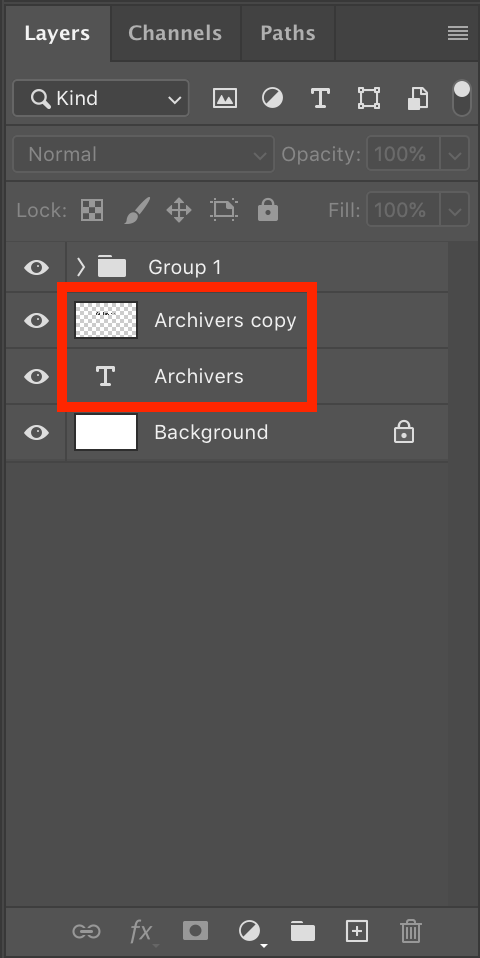 벡터 형태의 문자는 레이어의 이름 왼쪽에 'Text'의 줄임말인 'T'라고 표시됩니다.