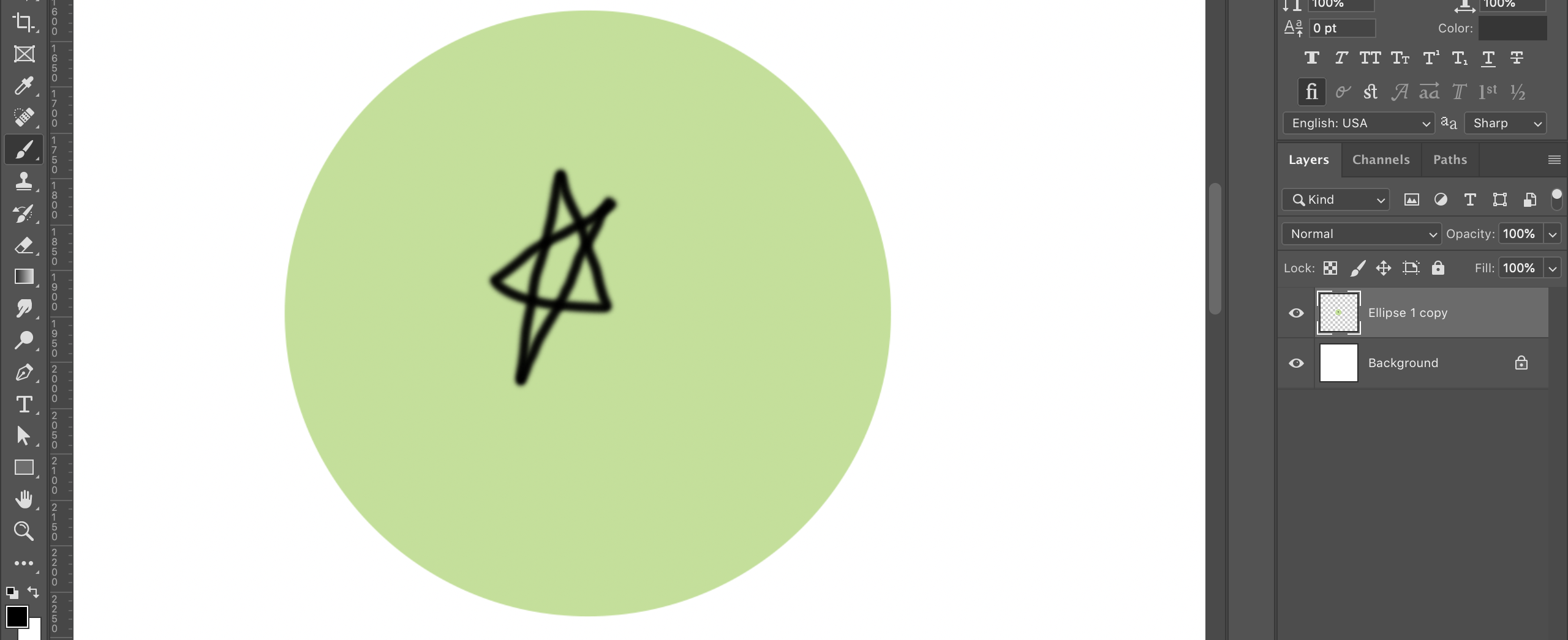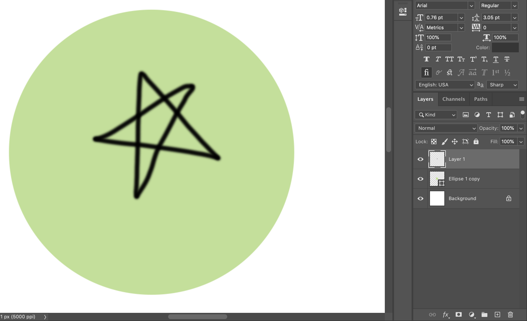 'Layer 1'이라는 새로운 레이어에 별을 그렸고, 이 별이 마치 모양 레이어에 그려진 것처럼 보이는 것입니다.