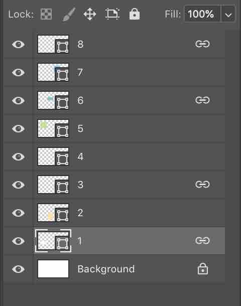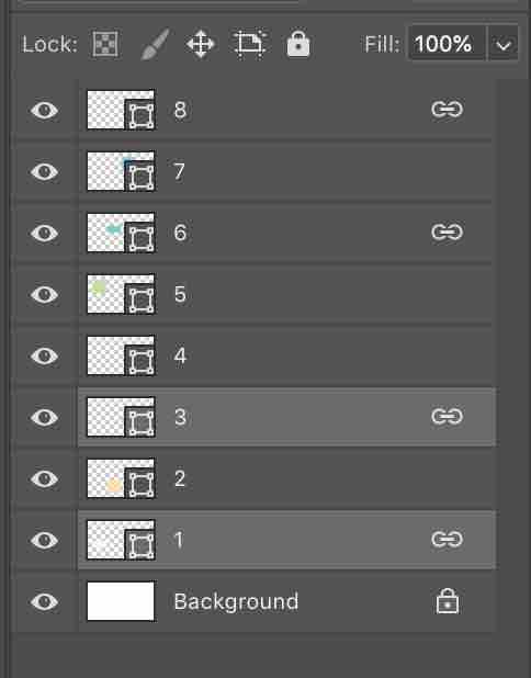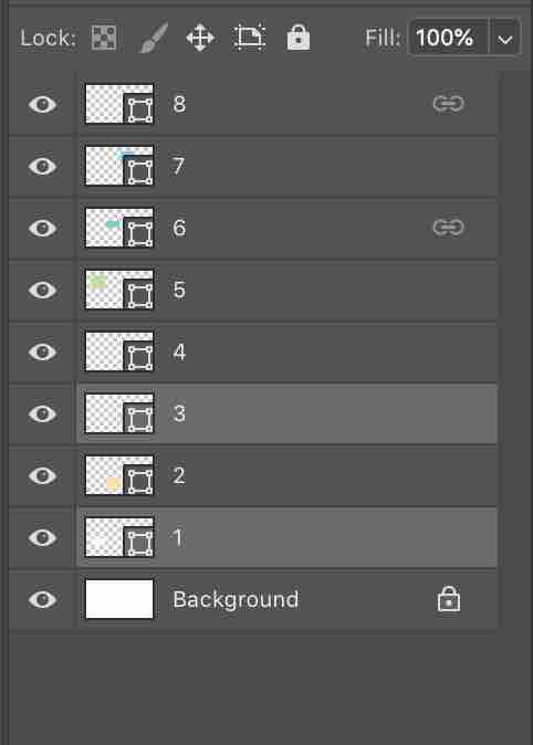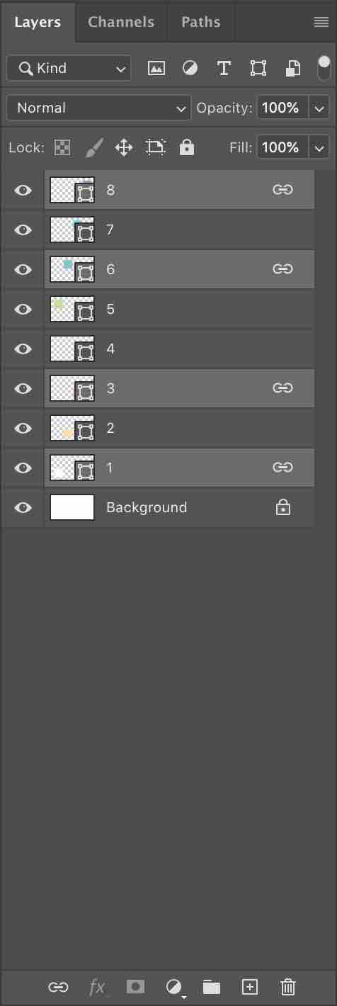 레이어 연결(Link Layers) 기능을 실행하면 선택한 레이어 오른쪽에 연결고리 표시가 뜹니다.