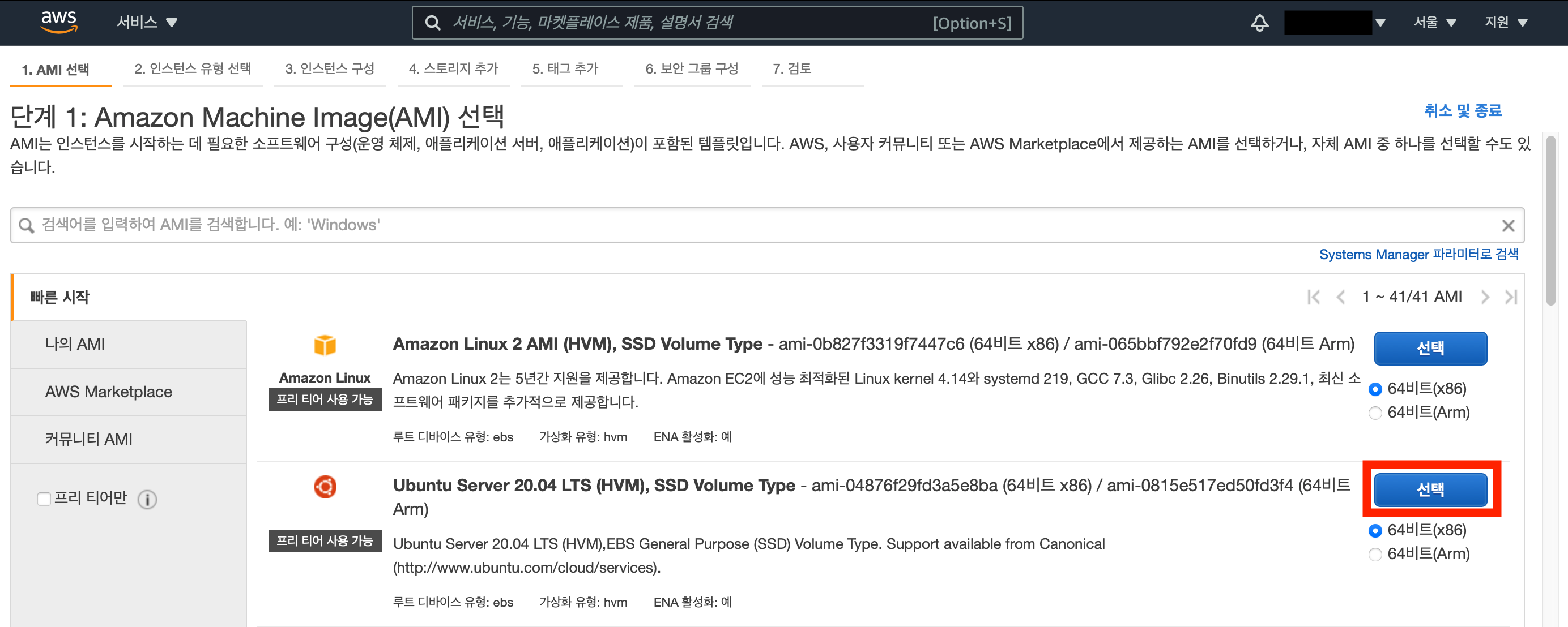 2. AMI 선택