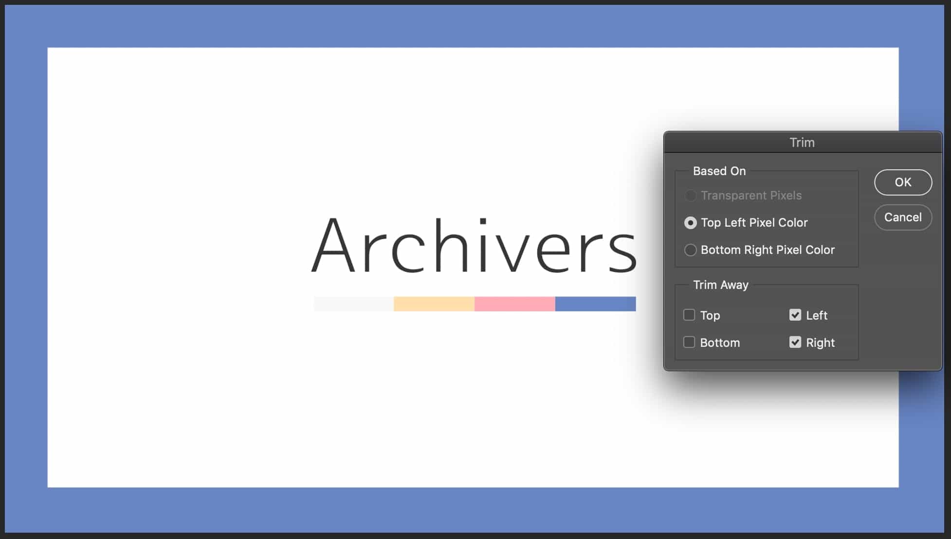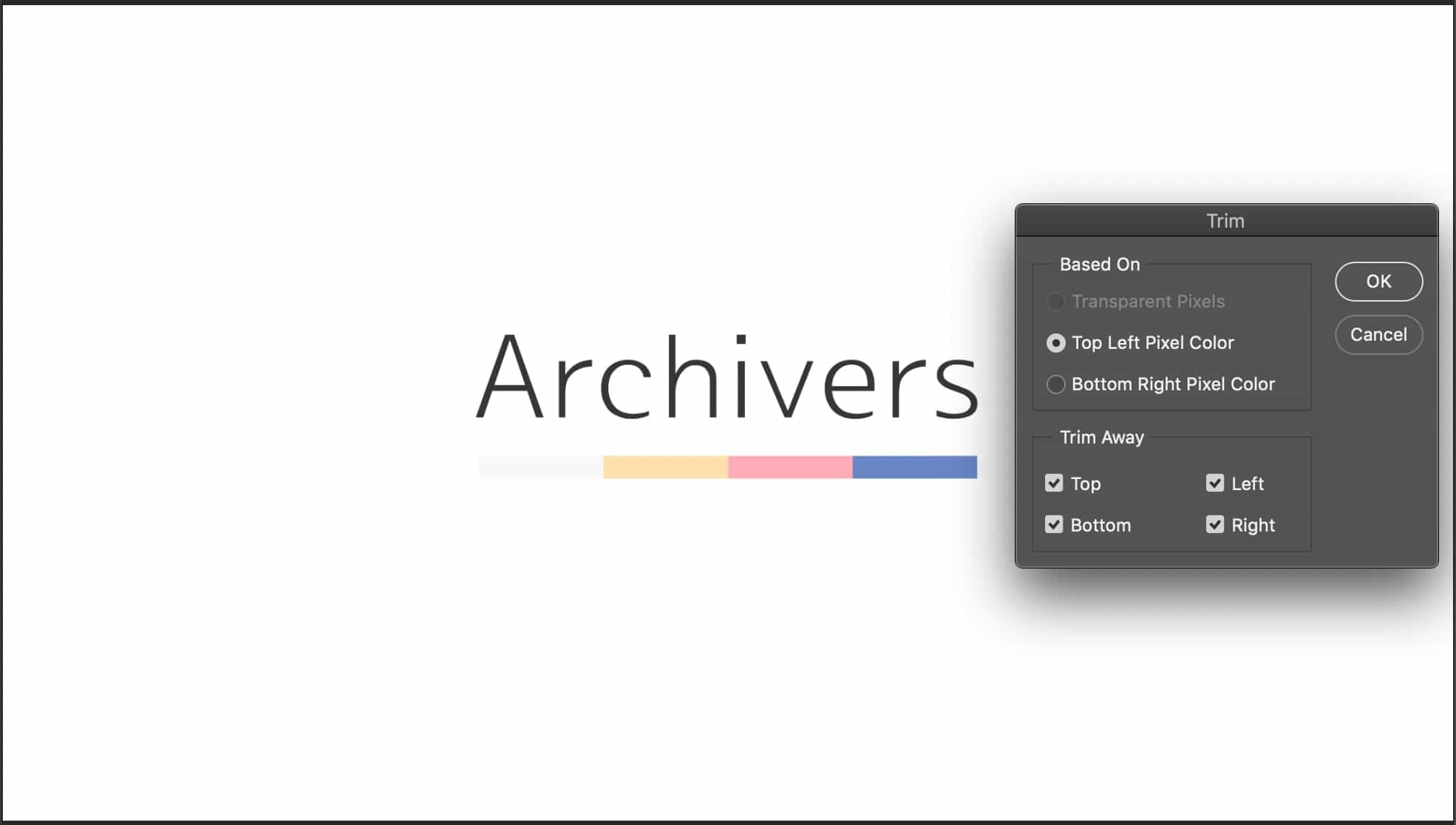 그리고 'Archivers' 로고의 상하좌우를 둘러싸고 있는 흰 배경을 잘라낼 것이므로, [Trim Away]에서는 상하좌우를 모두 선택합니다.