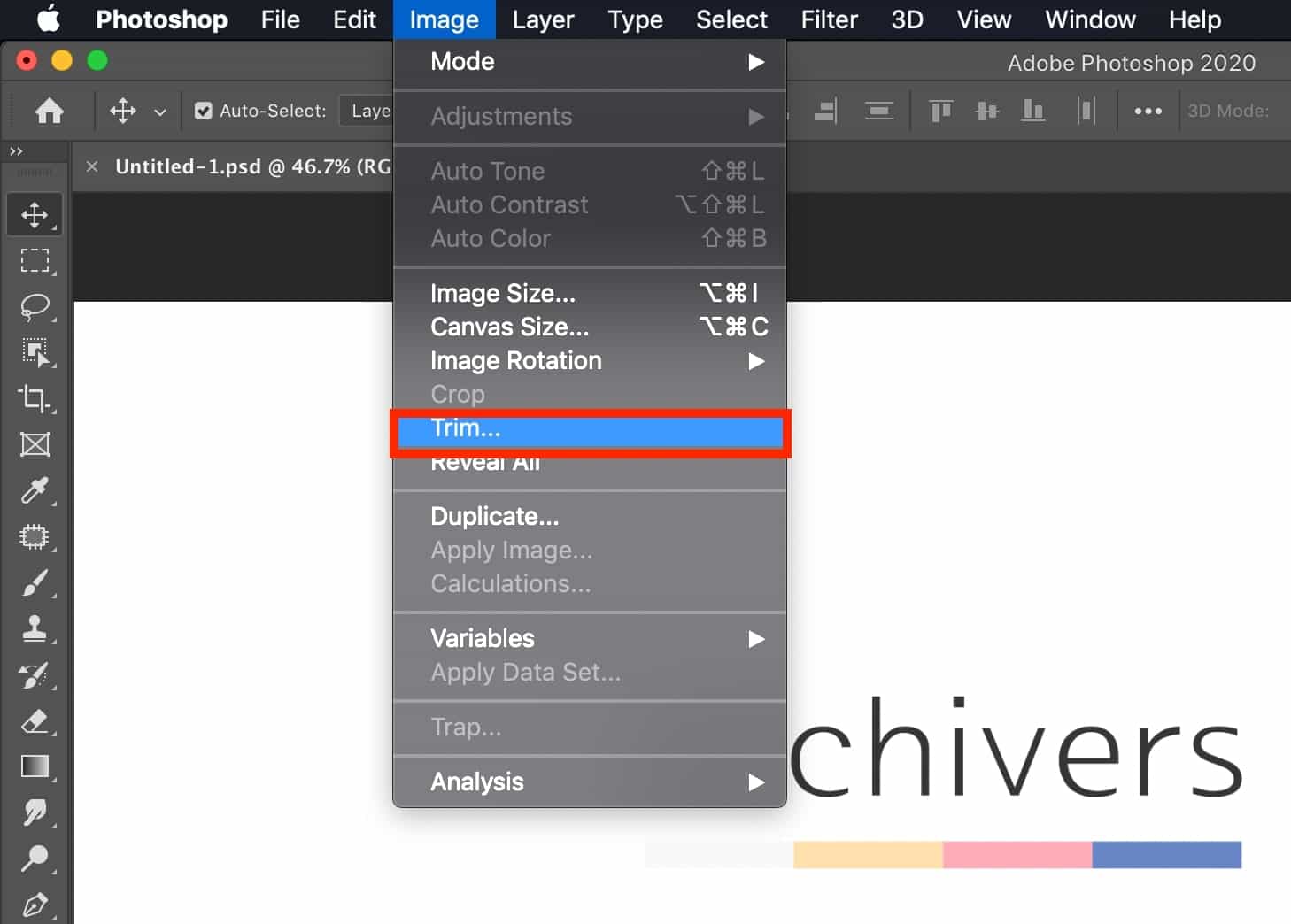 상단 메뉴의 [Image]-[Trim]을 선택합니다.