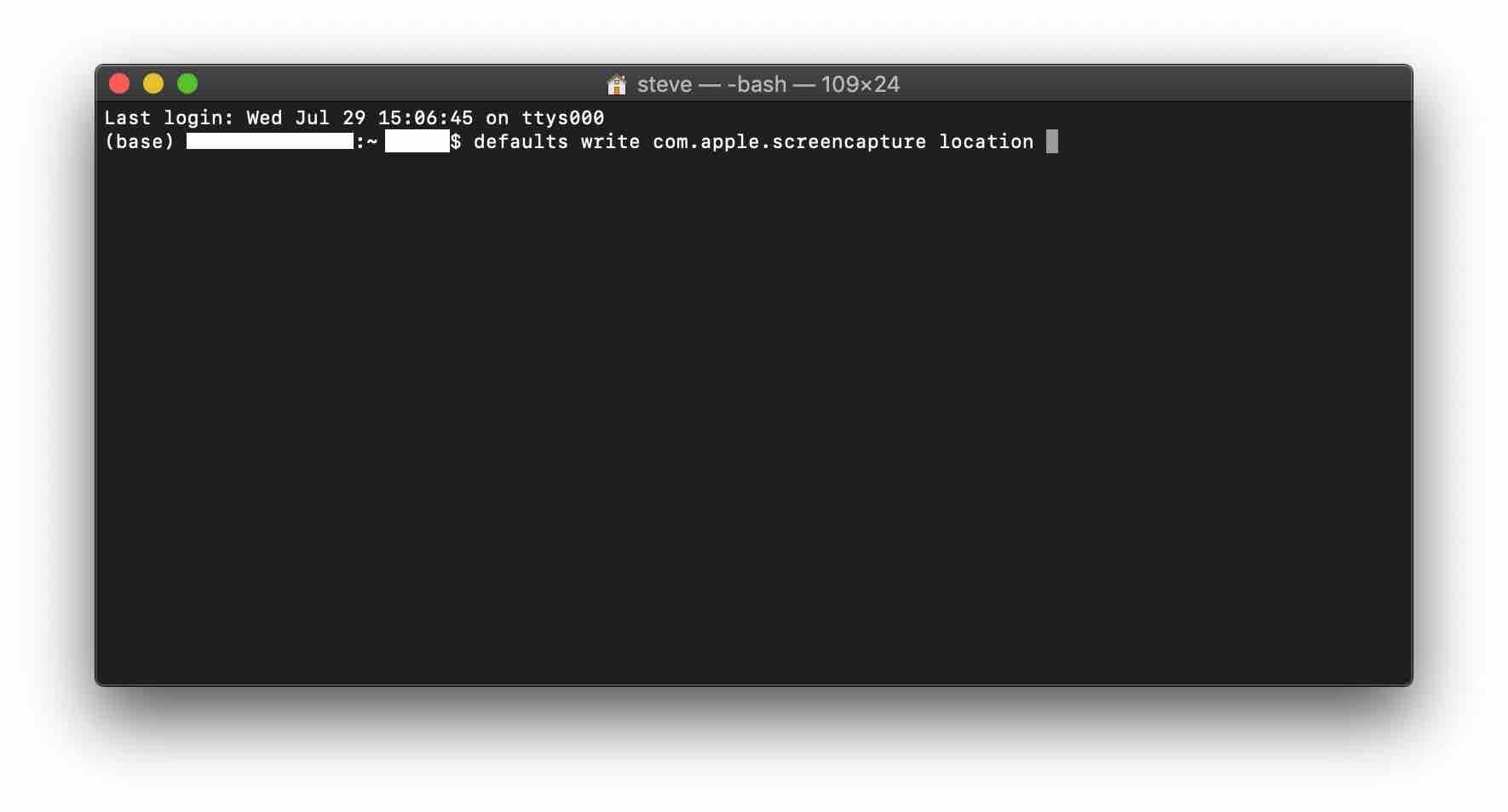 defaults write com.apple.screencapture location