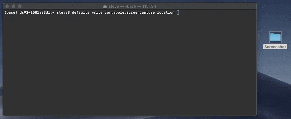 defaults write com.apple.screencapture location ~/Desktop/