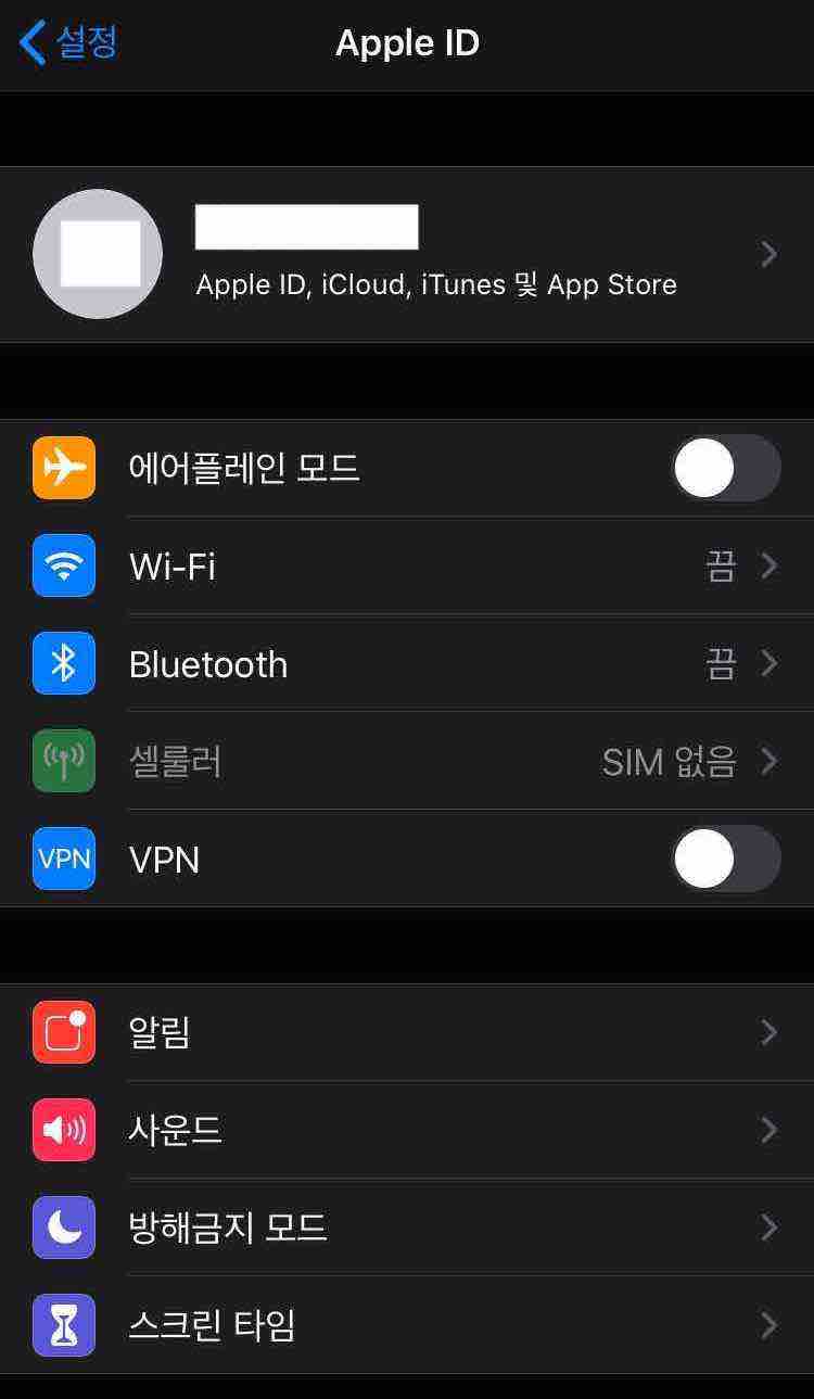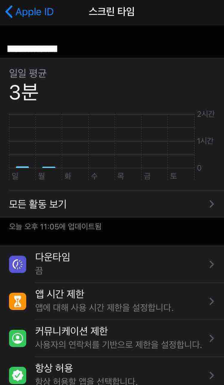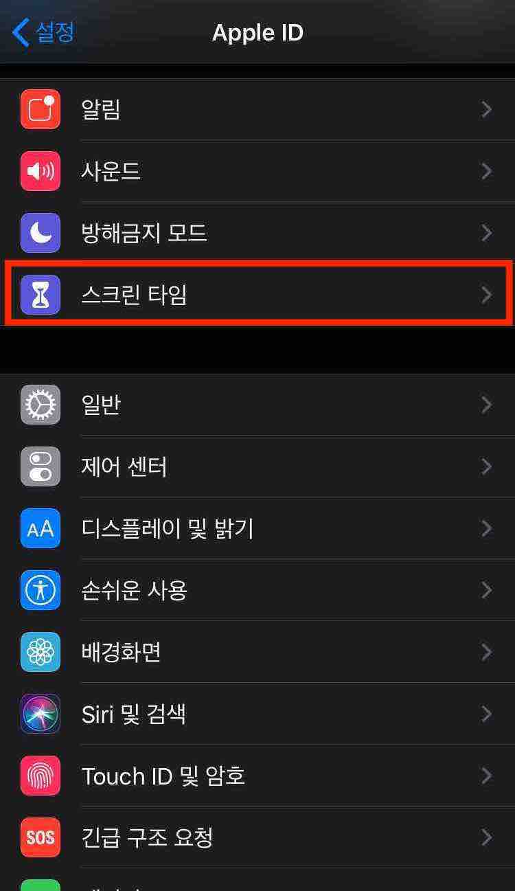5. 스크롤을 아래로 내려서 [스크린 타임]을 선택합니다.
