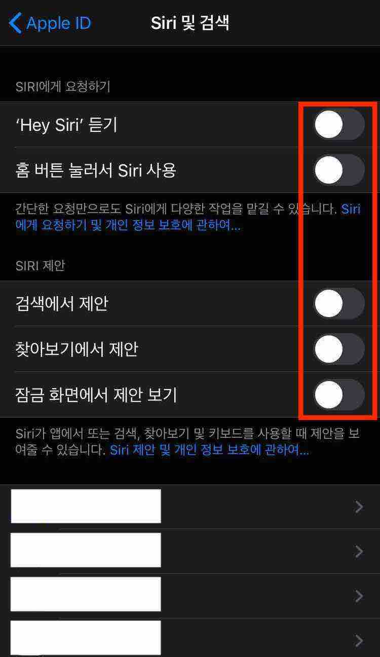 3. 필자는 Siri의 모든 기능을 비활성화했습니다.