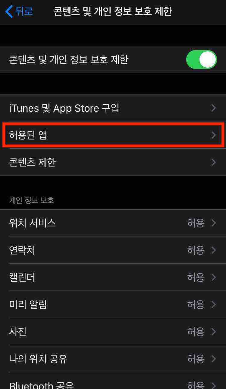 7. 그리고 [허용된 앱] 메뉴를 선택합니다.