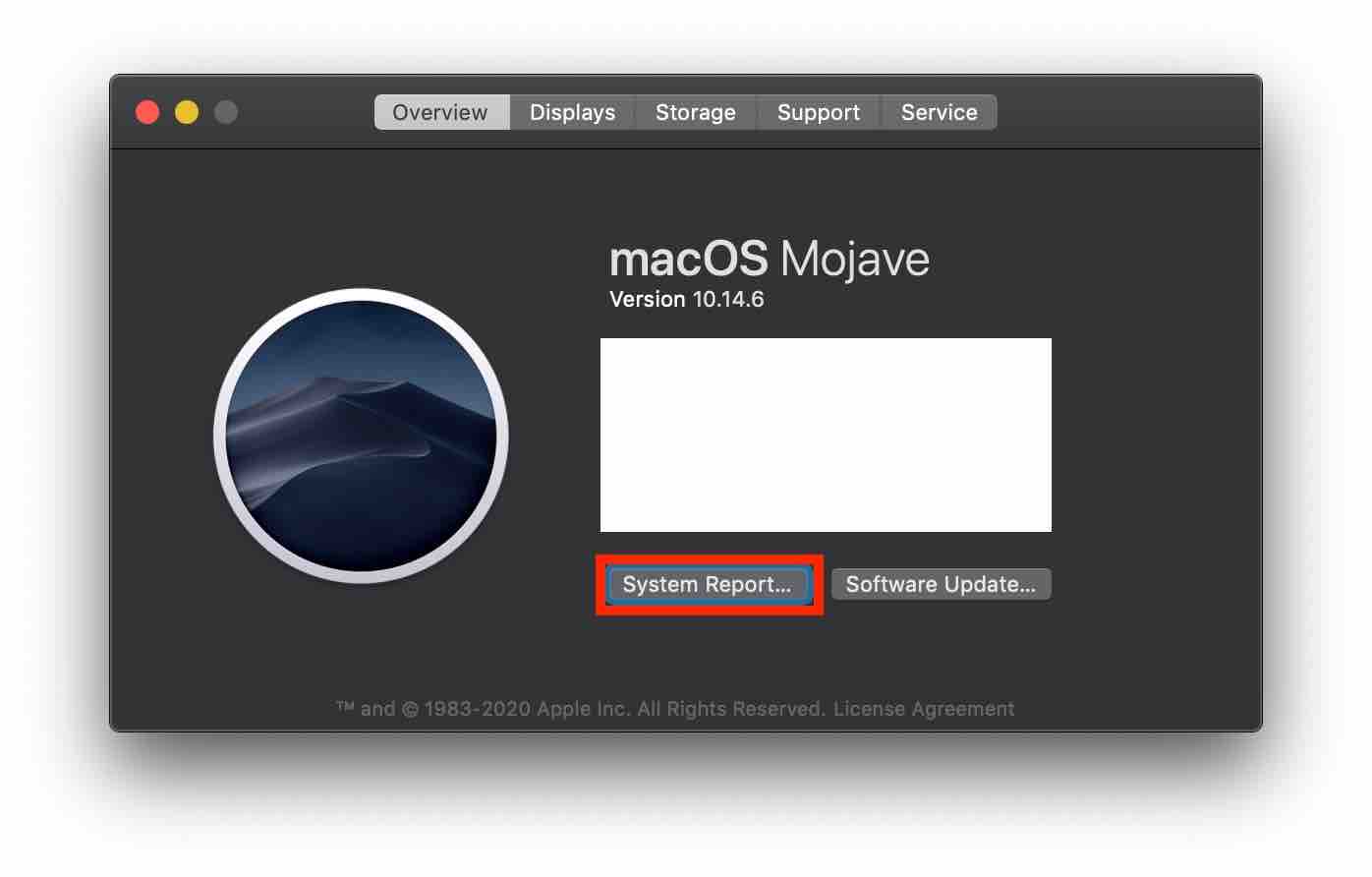 3. [시스템 리포트(System Report...)] 버튼을 선택합니다.