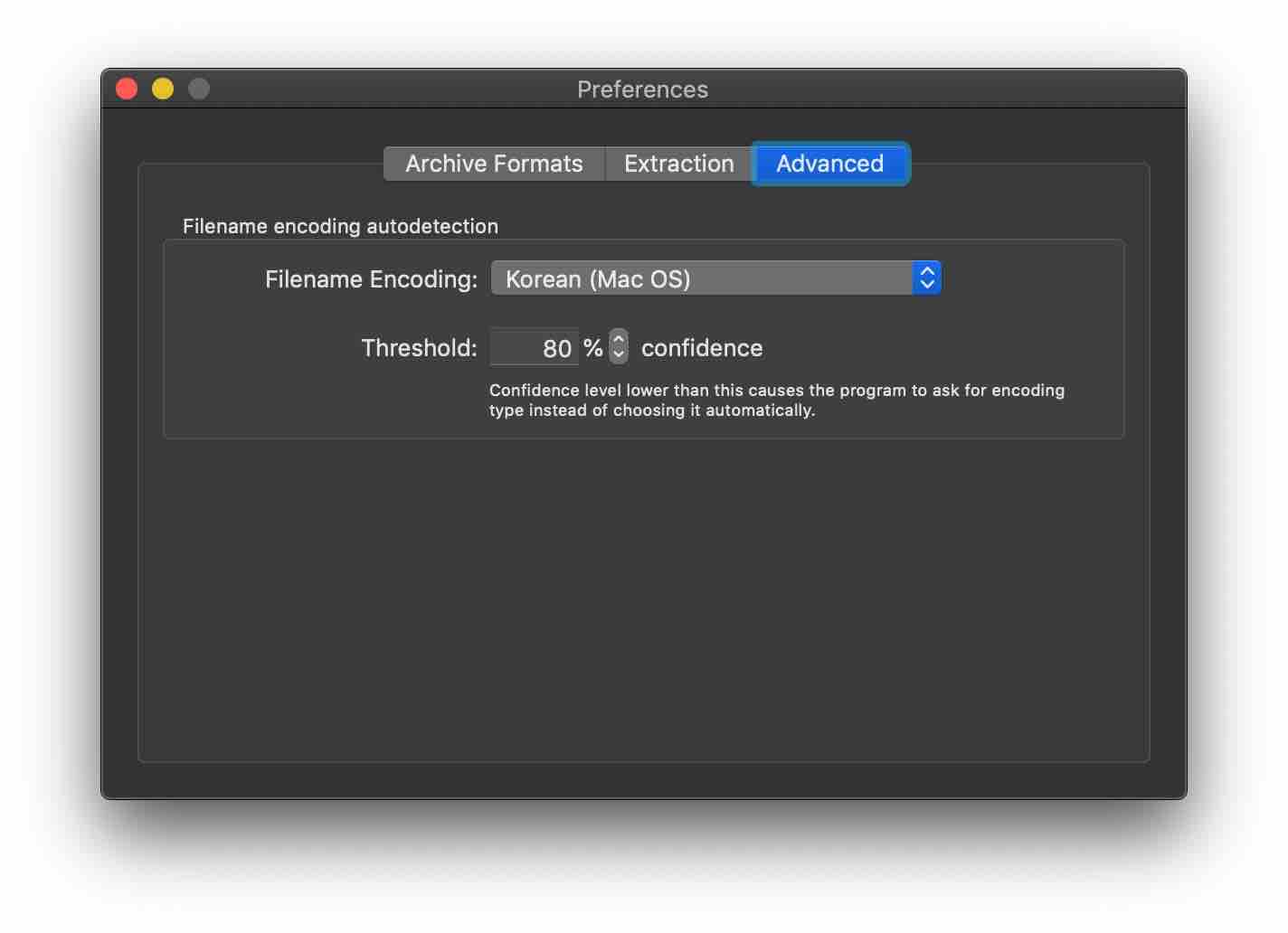 6. [Filename Encoding]에 [Korean (Mac OS)]가 선택되었습니다. 이제 설정 창을 닫습니다.