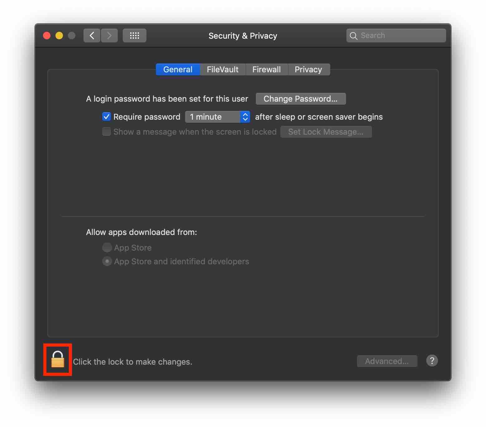 1. 이 경우 먼저 [보안 및 개인 정보 보호(Security & Privacy)] 창에 들어갑니다.