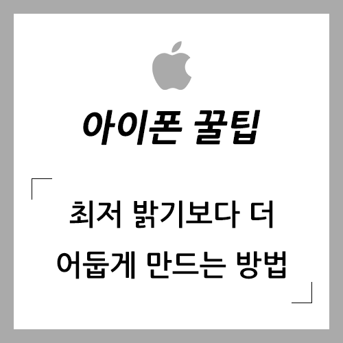조명이 없는 곳에서 아이폰을 사용할 때 최저 밝기에서도 밝기가 너무 세서 눈이 부신 경우가 있습니다. 이를 방지하기 위하여, 최저 밝기 설정보다 더 어둡게 만드는 방법에 대하여 알아보겠습니다.