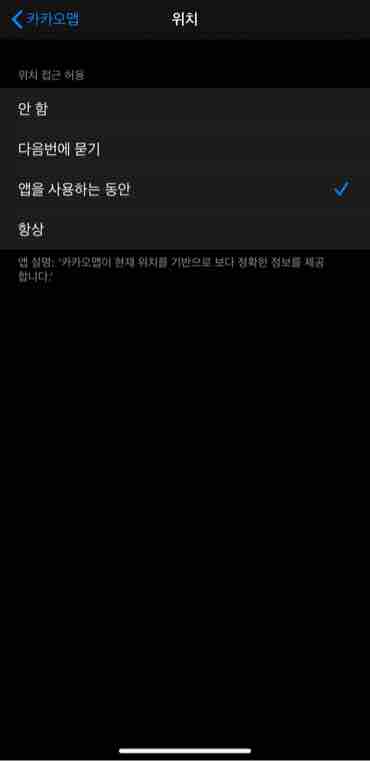 [카카오맵] 앱의 경우 해당 앱을 사용하는 동안에만 위치 정보에 접근할 수 있습니다.
