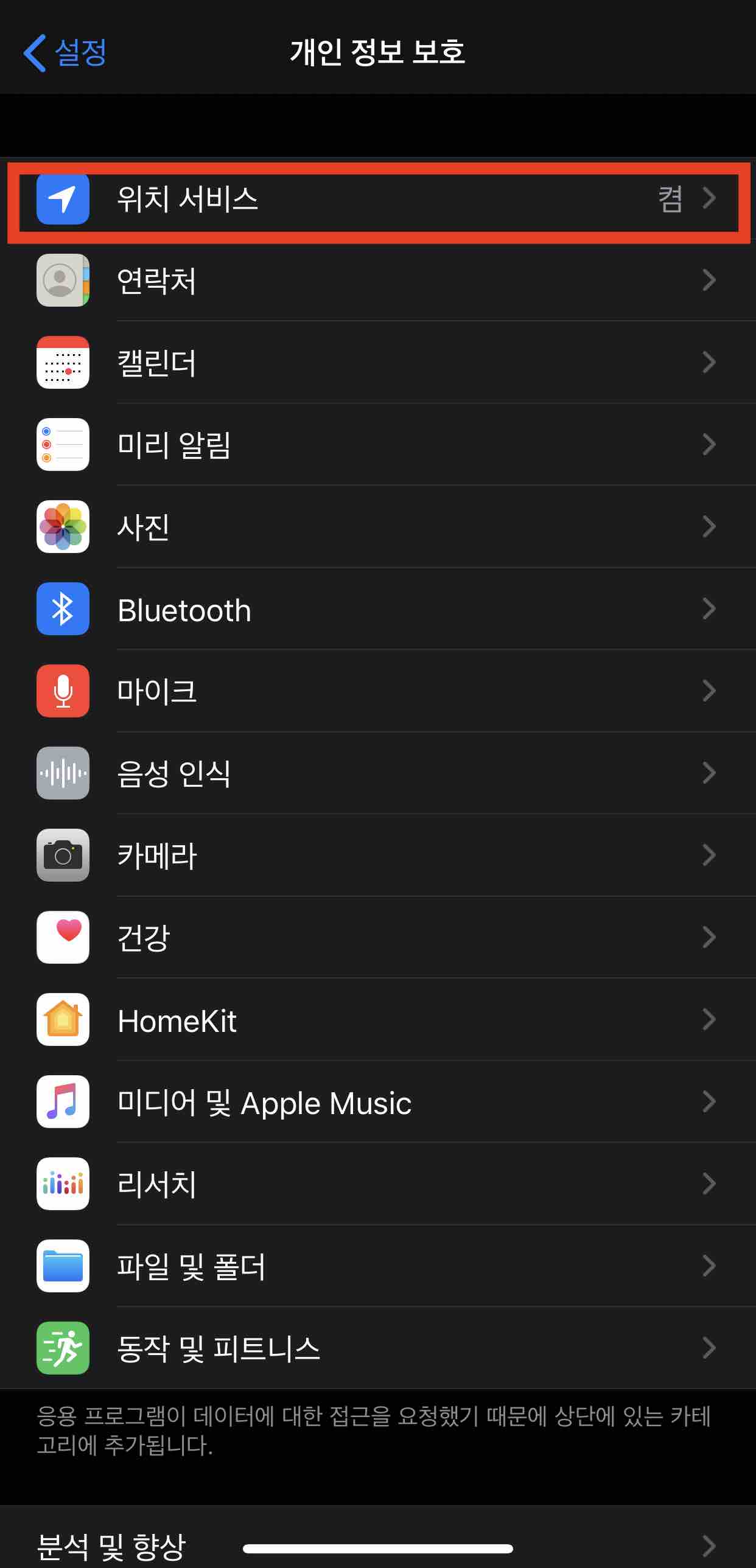 이번 포스팅에서는 내 아이폰의 위치 정보에 접근할 수 있는 권한을 가진 앱을 확인하는 방법을 알아보겠습니다.