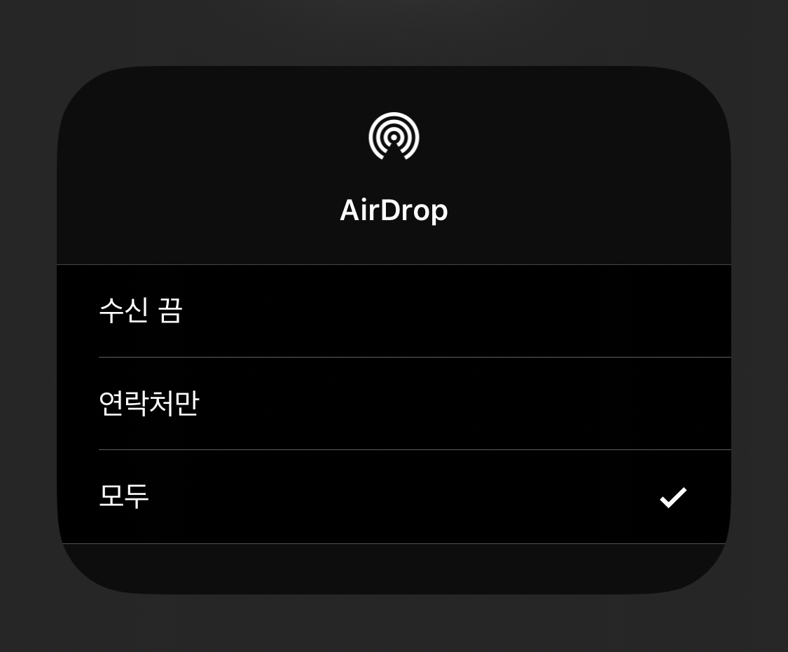 - 에어드롭이 활성화가 되어 있어야 하며 받는 쪽에서 '연락처만'으로 설정해 놨다면 보내는 사람이 연락처에 포함되어 있는지 확인해야 합니다.