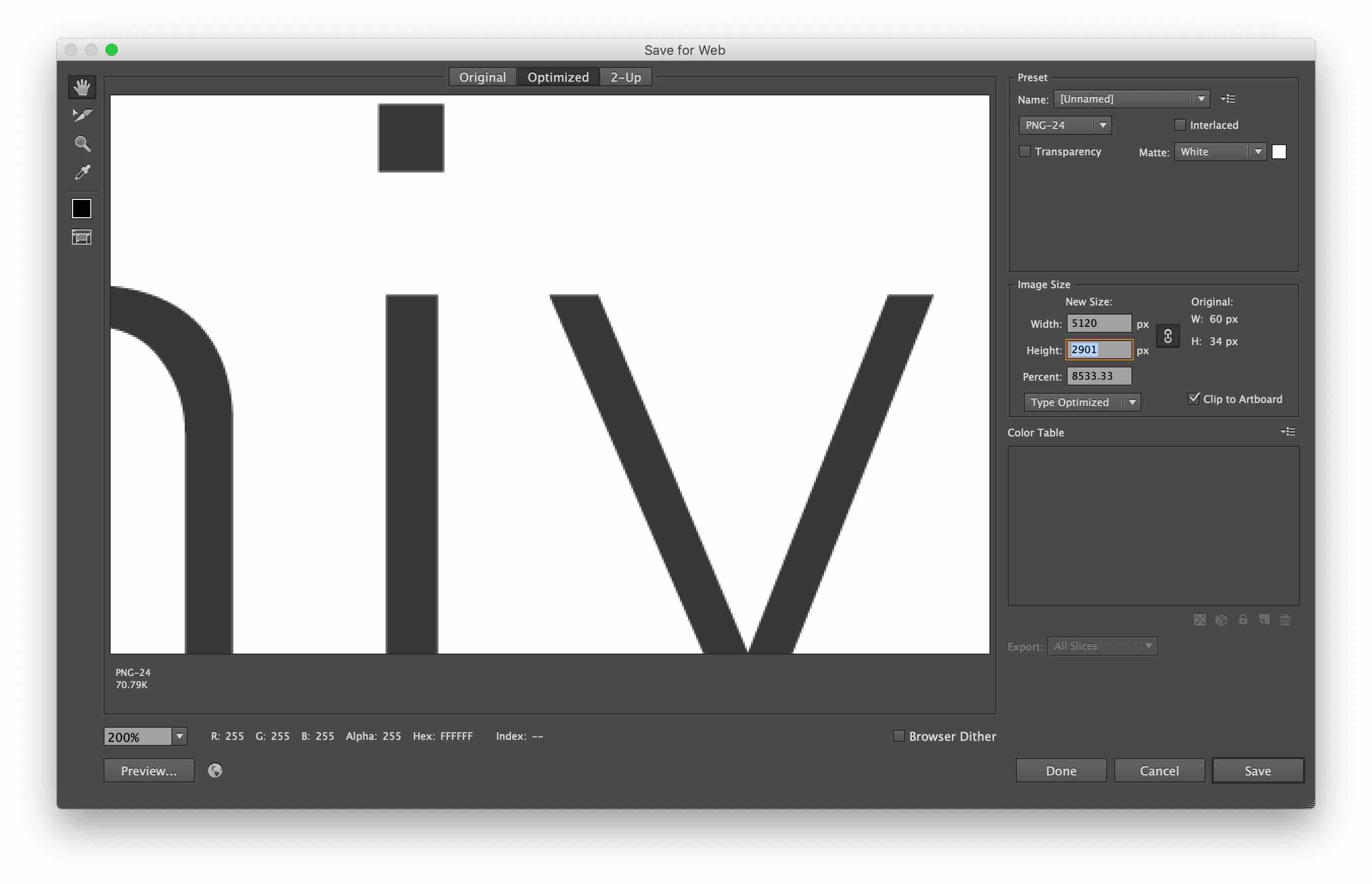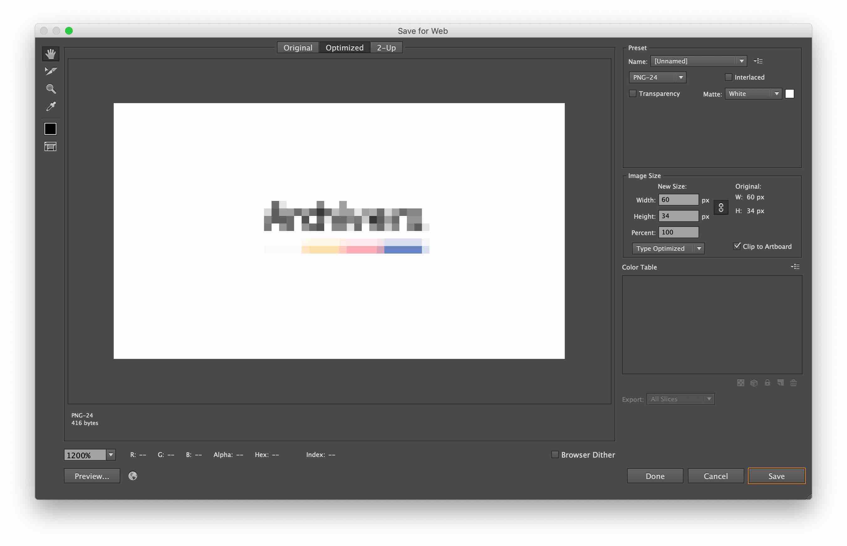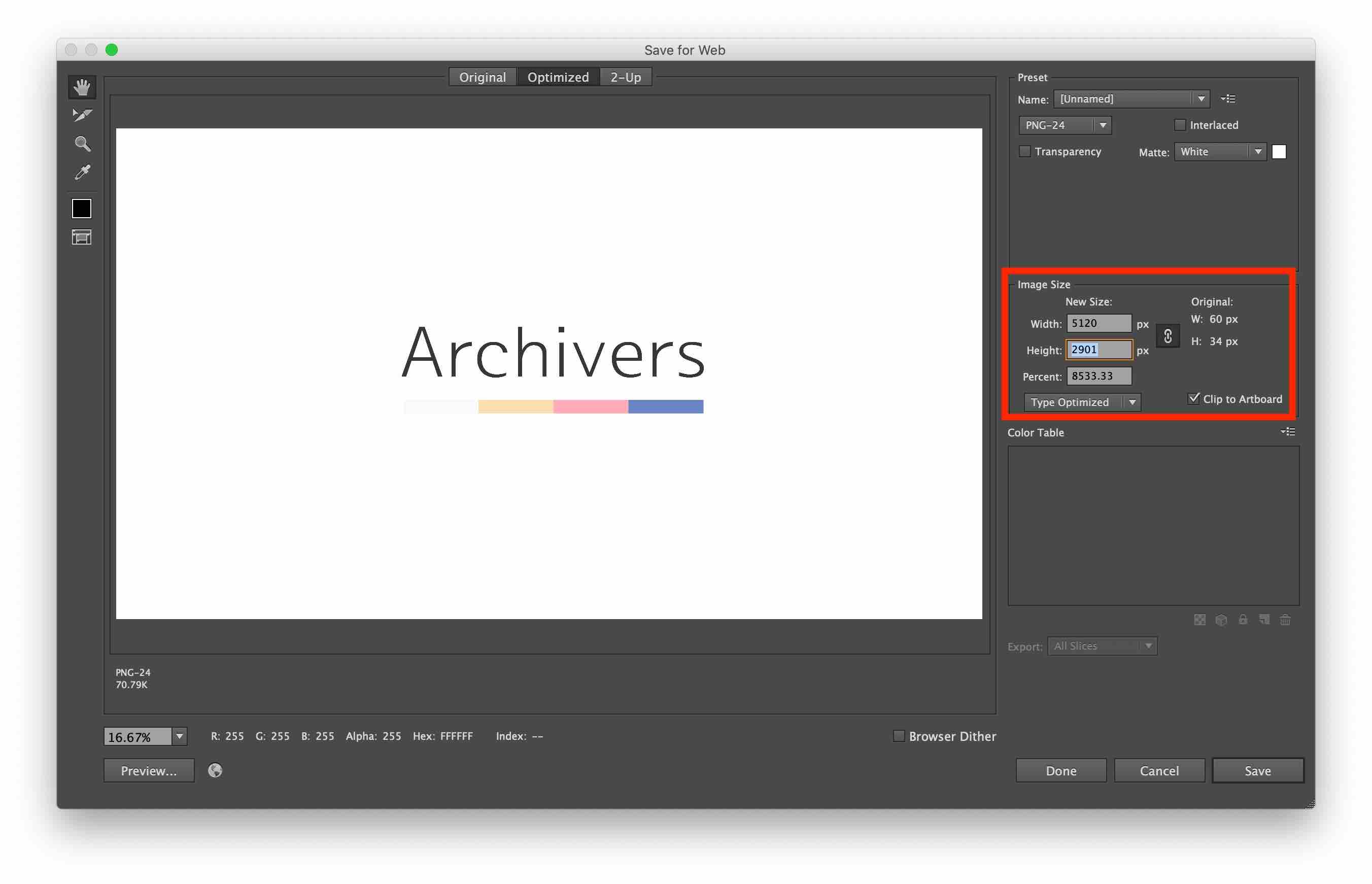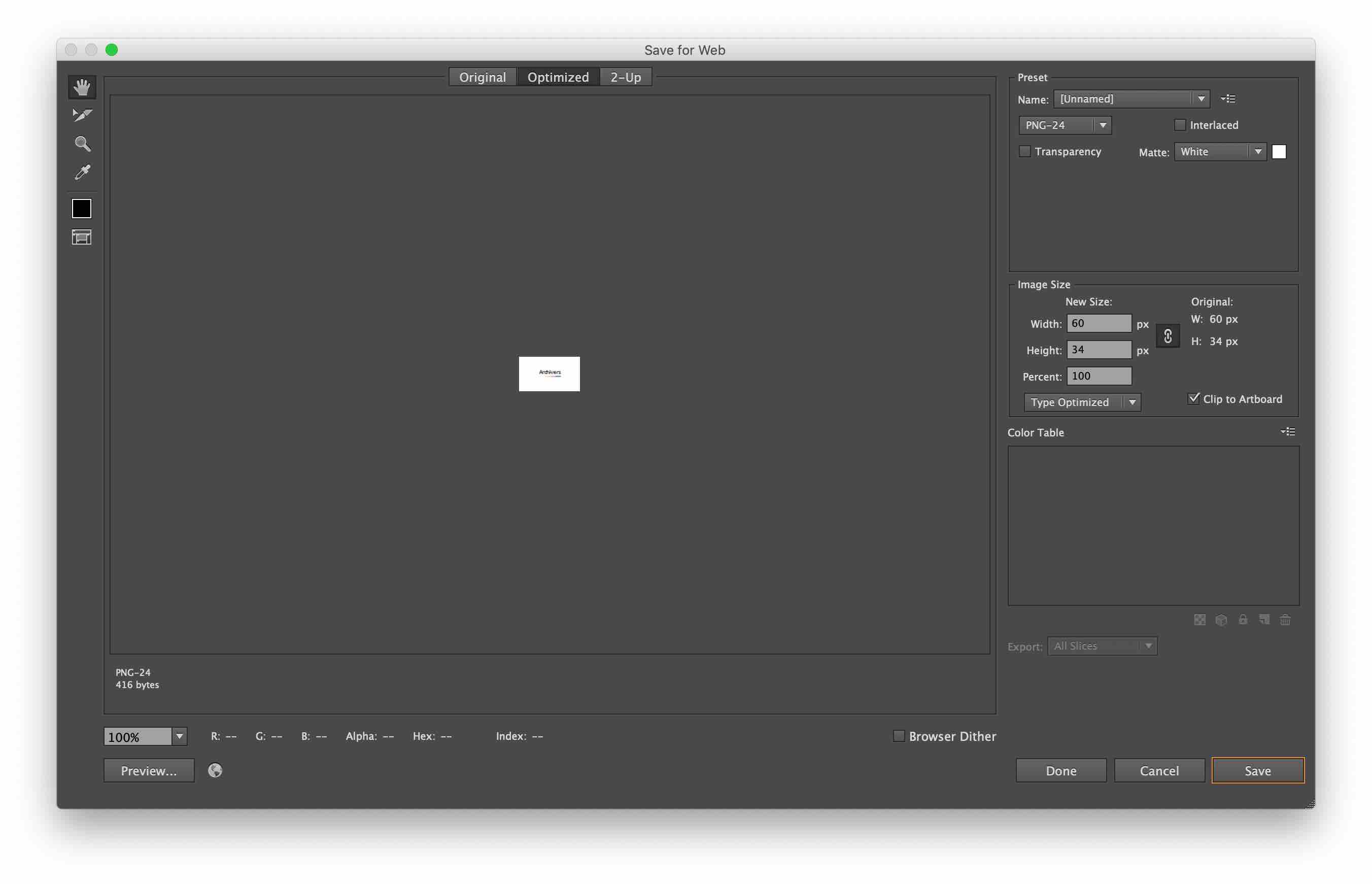 [웹용으로 저장(Save for Web)]을 선택하면 다음과 같은 창이 뜹니다.