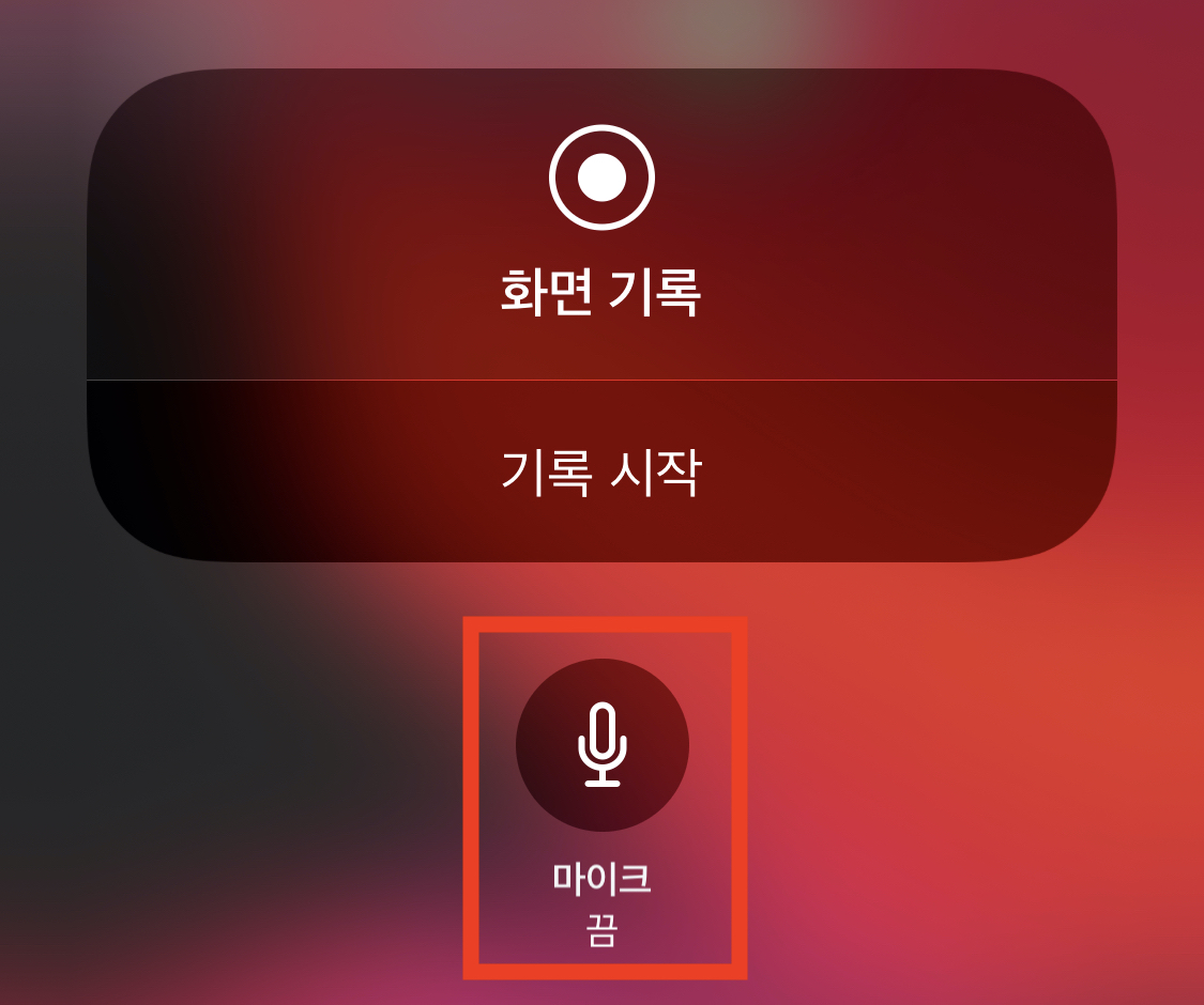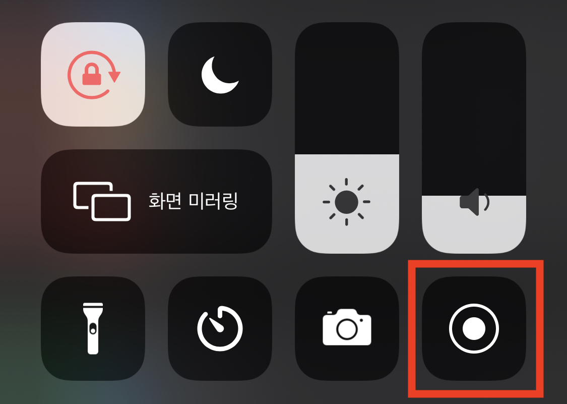 - 위와 같은 세팅을 마쳤다면 제어 센터의 녹화 버튼을 누릅니다.